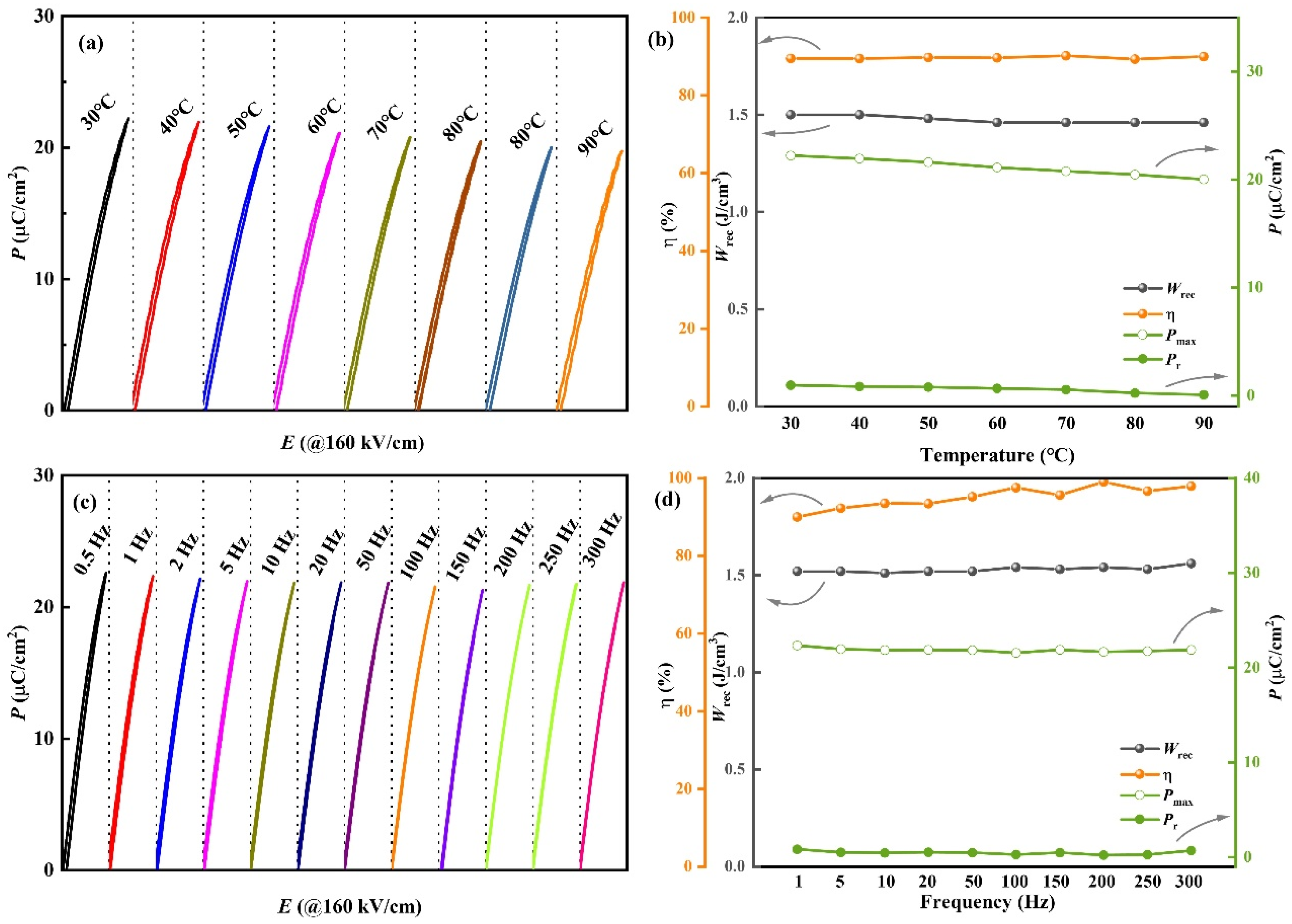 - Li, D.; Xu, D.; Zhao, W.; Avdeev, M.; Jing, H.; Guo, Y.; Zhou, T.; Liu, W.; Wang, D.; Zhou, D. A high-temperature performing and near-zero energy loss lead-free ceramic capacitor. Energy Environ. Sci. 2023, 16, 4511–4521. [Google Scholar] [CrossRef]