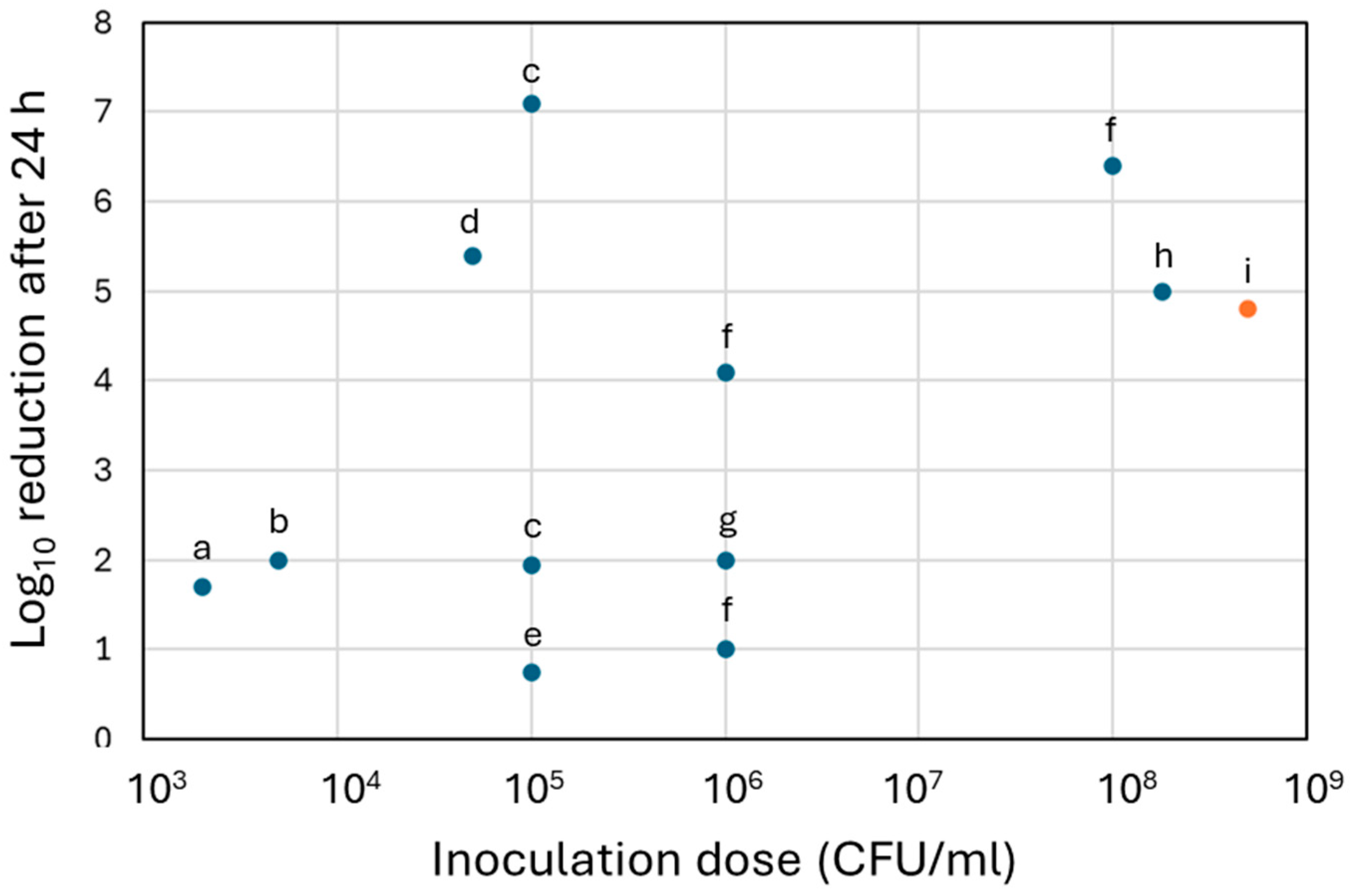 - Bryce, E.A.; Velapatino, B.; Akbari Khorami, H.; Donnelly-Pierce, T.; Wong, T.; Dixon, R.; Asselin, E. In vitro evaluation of antimicrobial efficacy and durability of three copper surfaces used in healthcare. Biointerphases 2020, 15, 011005. [Google Scholar] [CrossRef]