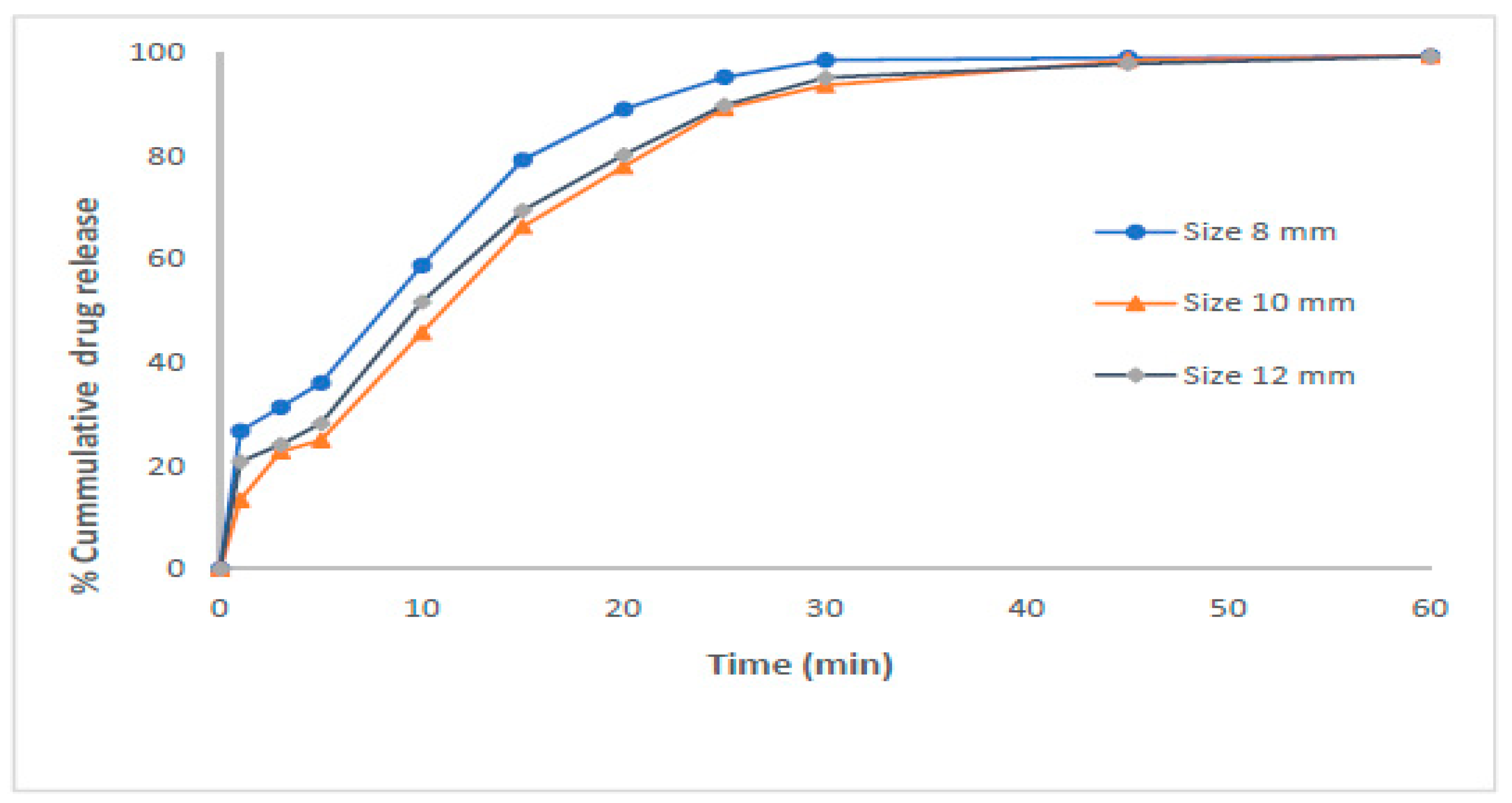 | Orodispersible tablets | High hydrophilicity | Thickness: 3.47–3.89 mm; size: 9.95–10.03 mm; hardness: 4.1–10.2 kg/cm2; wetting time: 28–96 s; friability: 0.30%; disintegration time: 18.7 s | Adequate mechanical strength and faster disintegration time | Binding agent; enhances the dissolution of poorly soluble compounds, reduces pill burden, and overcomes swallowing problem | [34] |