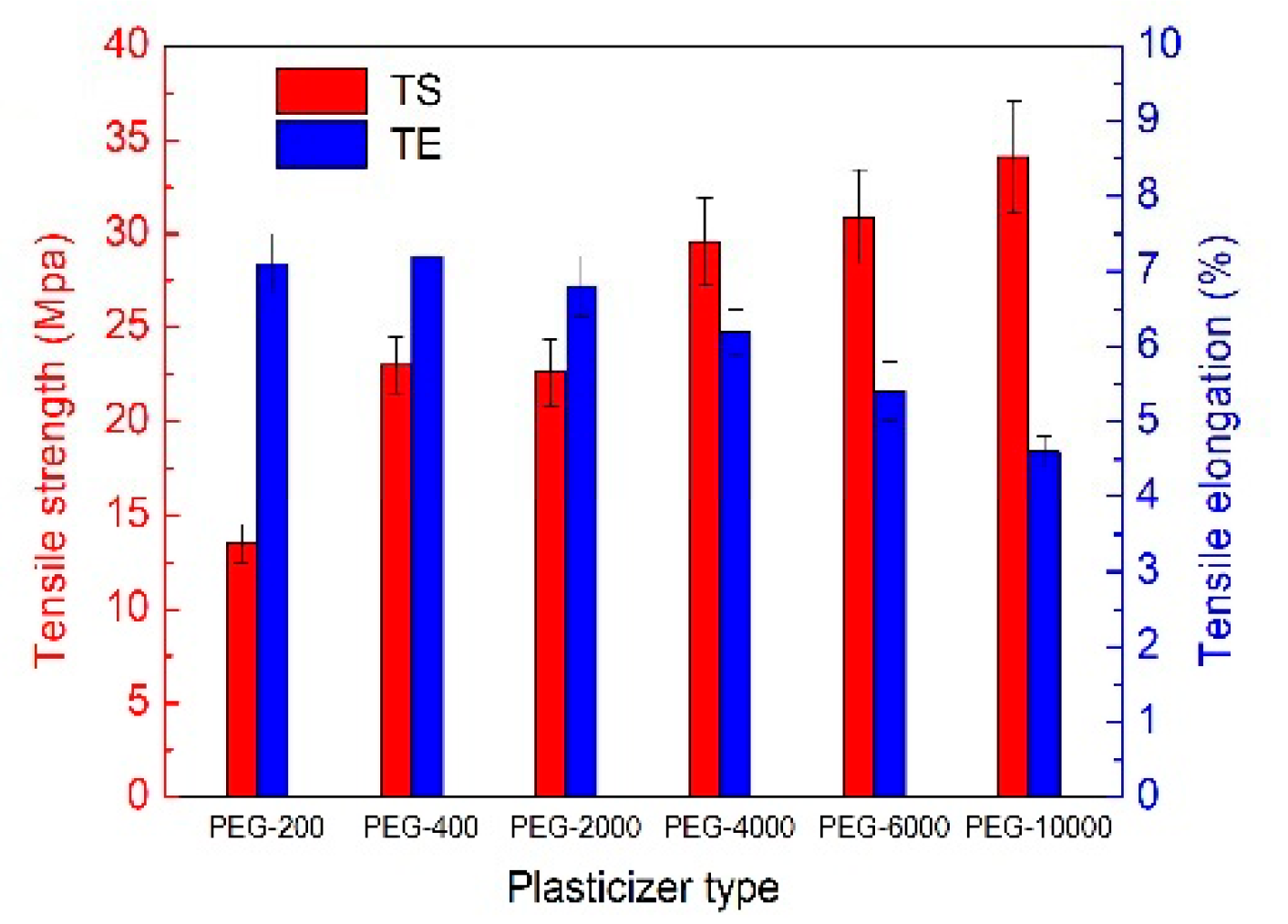 | Enteric capsules | Molecular weight: 4000 | Moisture after the packaging process: 13.6%; gelation temperature: 34 °C; gelation time: 19 s; smooth surface; stable in the stomach for 120 min | Fabrication of enteric capsules without the coating step | Filler; reduces the moisture of capsules, eliminates porosity, and increases stability in the stomach | [43] |