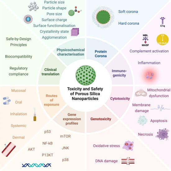 - Hosseinpour, S.; Walsh, L.J.; Xu, C. Biomedical Application of Mesoporous Silica Nanoparticles as Delivery Systems: A Biological Safety Perspective. J. Mater. Chem. B 2020, 8, 9863–9876. [Google Scholar] [CrossRef] [PubMed]