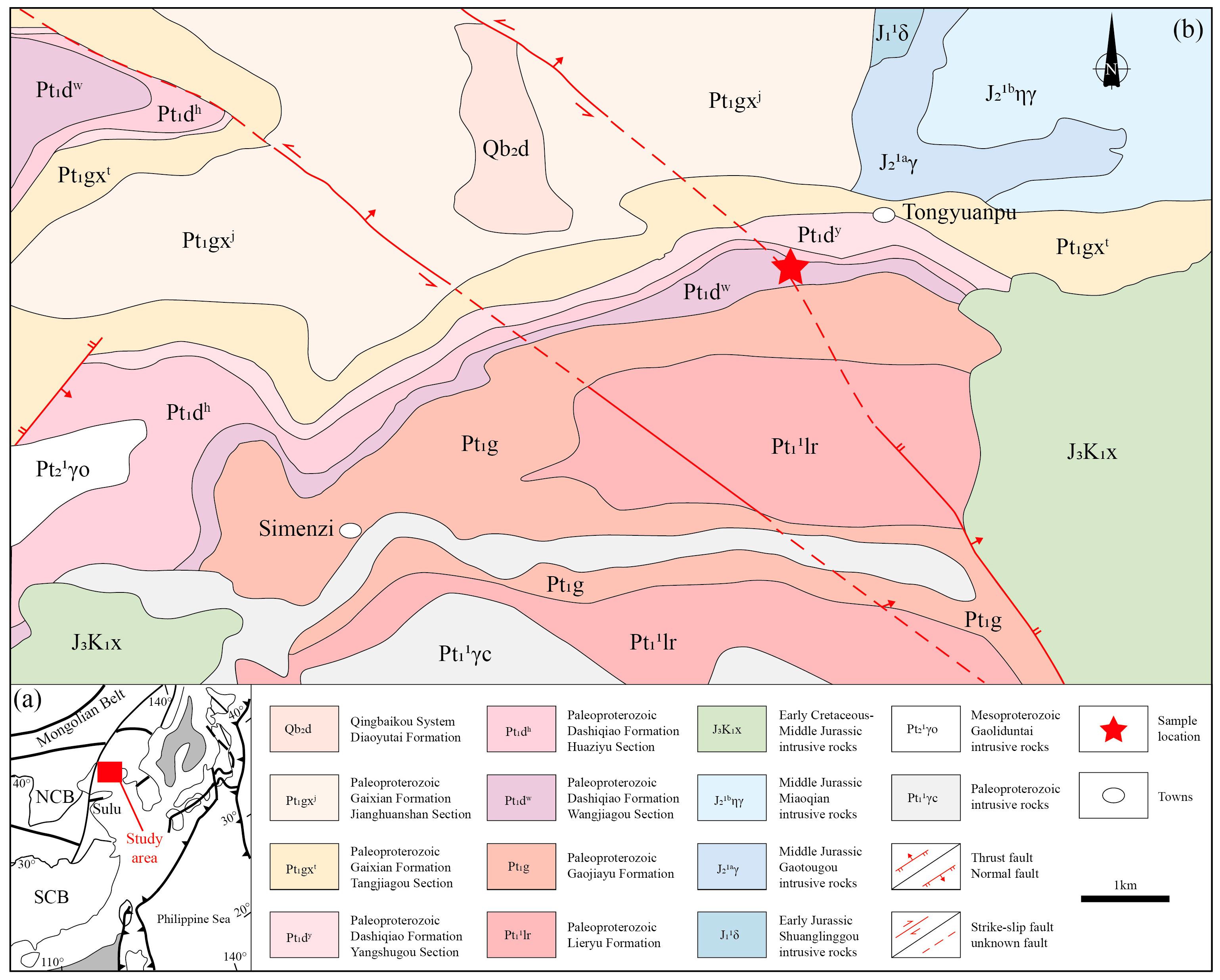 - Bureau of Geology and Mineral Resources of Liaoning Province. Regional Geology of the Liaoning Province; Geological Publishing House: Beijing, China, 2014; pp. 1–1433. [Google Scholar]