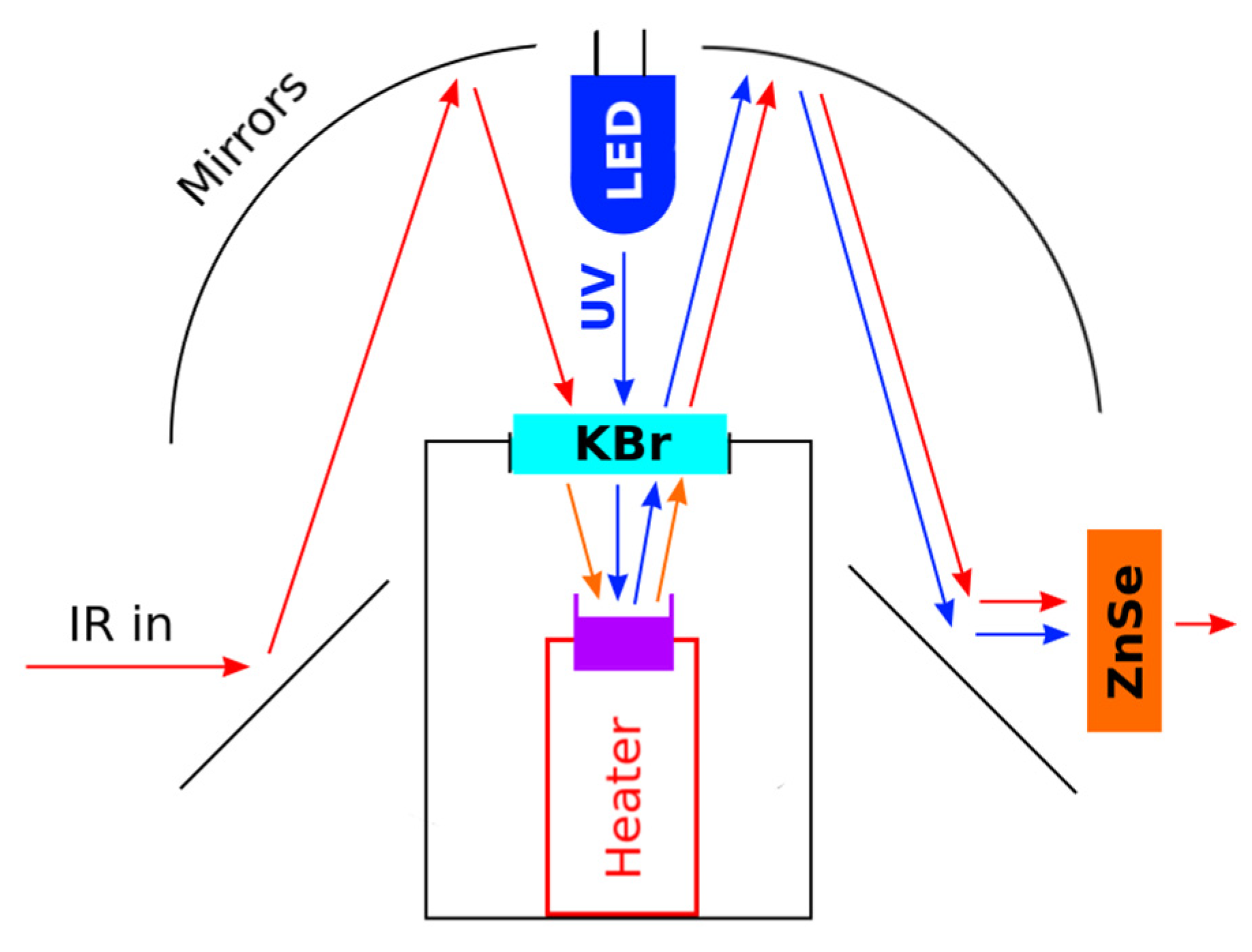 - Tavaglione, E.; Spagnoli, E.; Valt, M.; Bernardoni, P.; Della Ciana, M.; Bottegoni, F.; Negri, M.; Scali, F.; Zucchetti, C.; Ferroni, M.; et al. Photosensitivity and Gas Sensing Mechanisms: Validation of an Operando DRIFT Spectroscopy Apparatus for Light-Activated Chemoresistive Gas Sensors. Sens. Actuators B Chem. 2025, 444, 138504. [Google Scholar] [CrossRef]