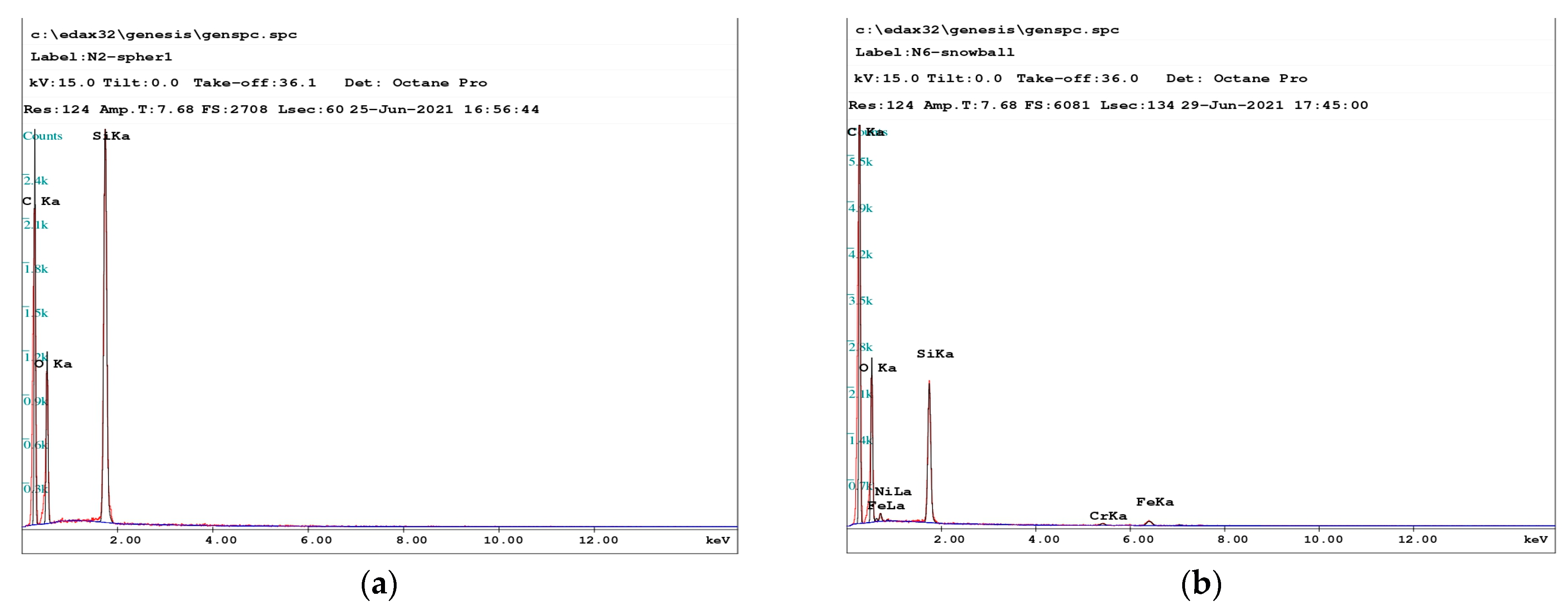 Figure 4. Spectral composition of (a) nanoparticles and (b) microparticles.