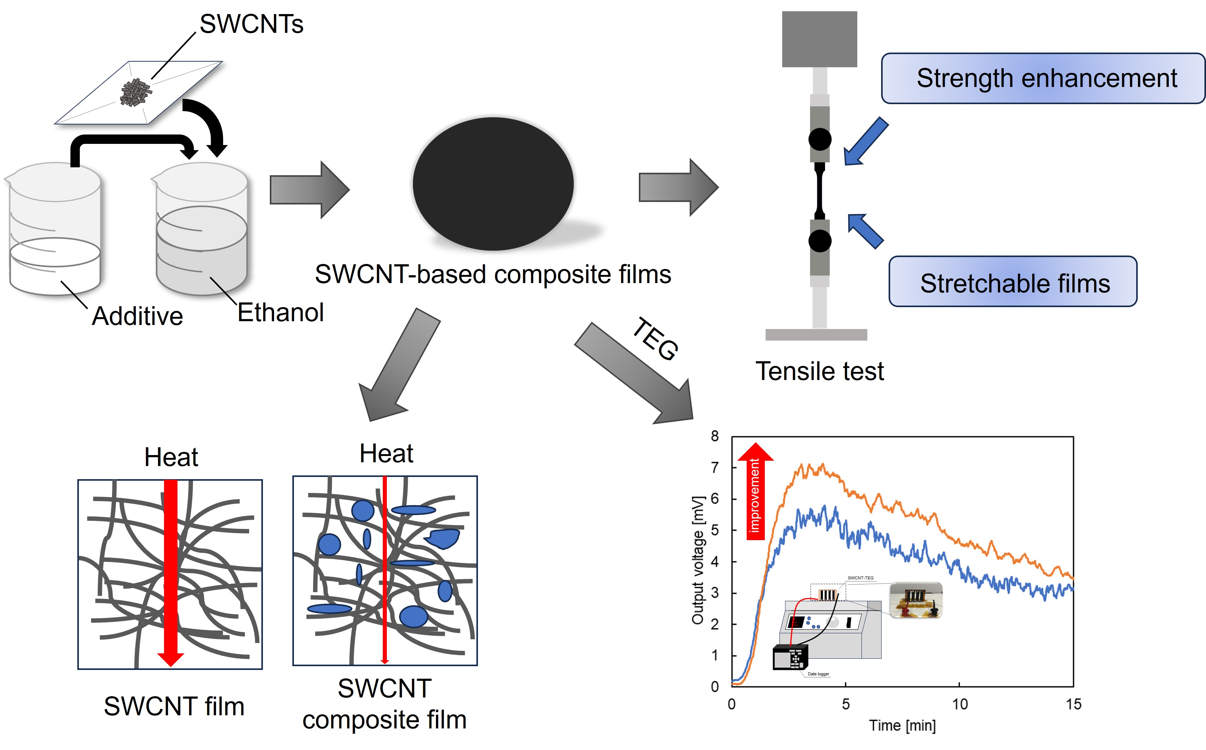 SWCNT-Based Composite Films with High Mechanical Strength and Stretchability by Combining Inorganic-Blended Acrylic Emulsion for Various Thermoelectric Generators