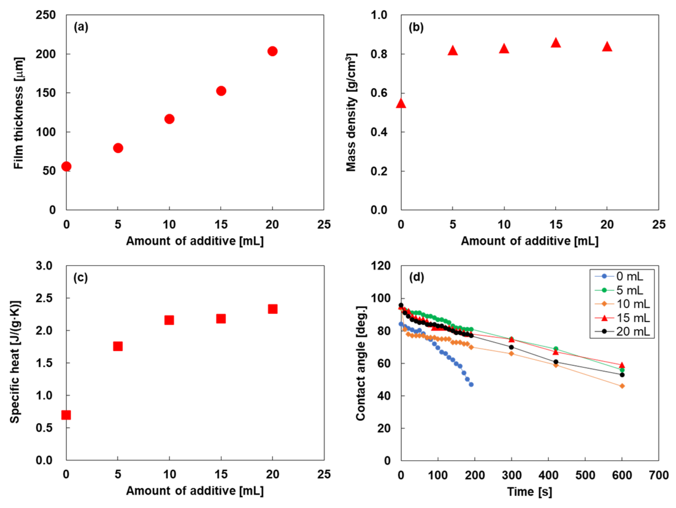 - Nakazawa, Y.; Yamamoto, H.; Okano, Y.; Amezawa, T.; Kuwahata, H.; Miyake, S.; Takashiri, M. Boosting performance of heat-source free water-floating thermoelectric generators by controlling wettability by mixing single-walled carbon nanotubes with α-cellulose. Appl. Therm. Eng. 2025, 258, 124714. [Google Scholar] [CrossRef]