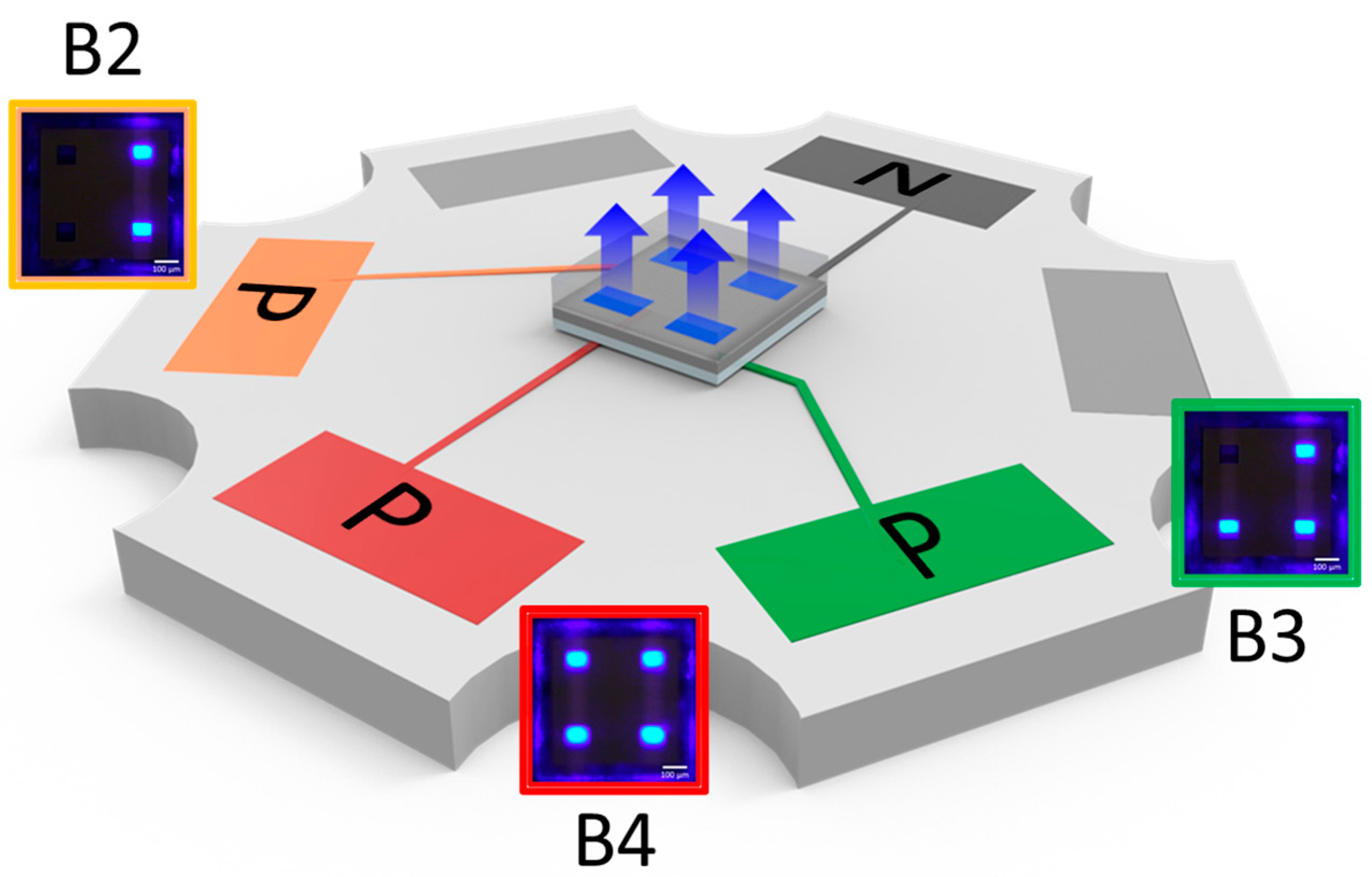 3.1. Electrical and Optical Performance of Blue MiP4 Devices