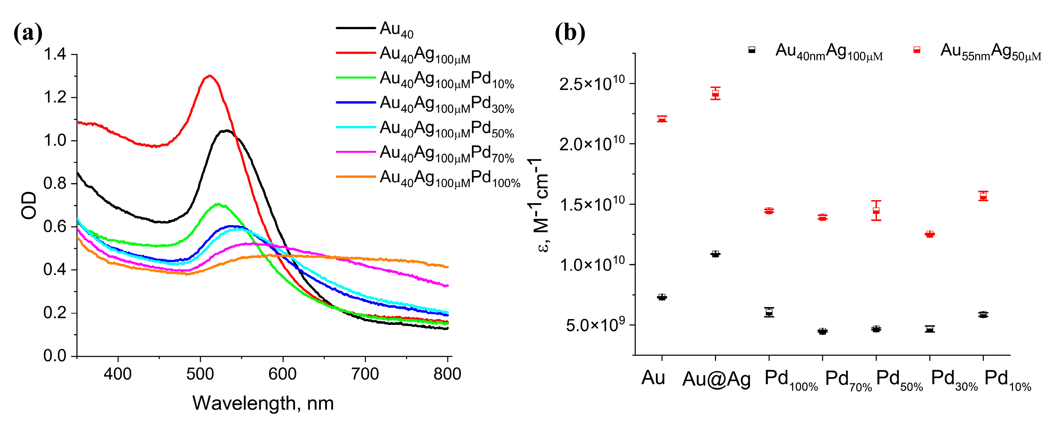 - Khlebtsov, N.G.; Dykman, L.A. Optical properties and biomedical applications of plasmonic nanoparticles. J. Quant. Spectrosc. Radiat. Transf. 2010, 111, 1–35. [Google Scholar] [CrossRef]