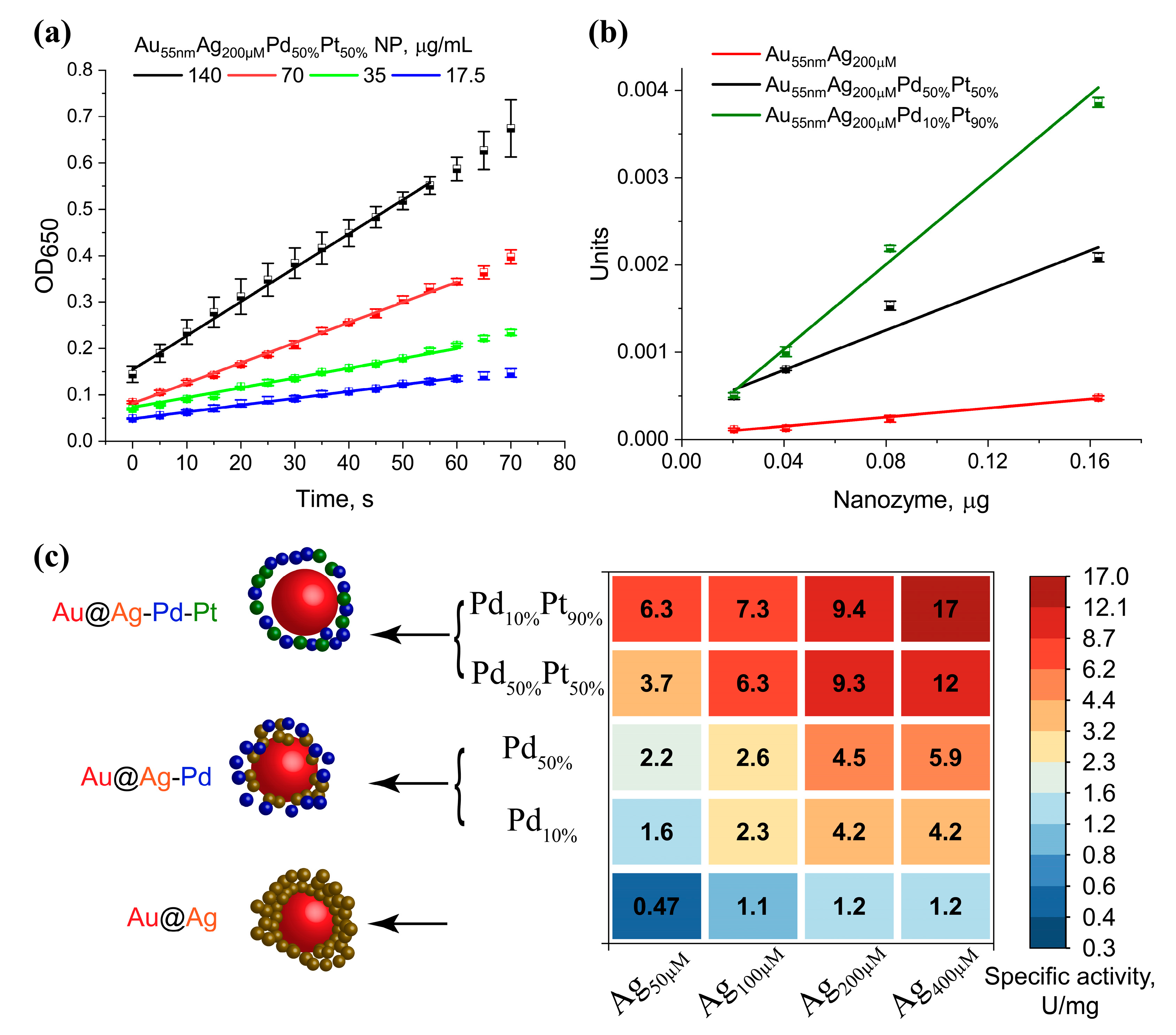 Panferov, V.G.; Byzova, N.A.; Shumaev, K.B.; Zherdev, A.V.; Dzantiev, B.B. Tetrametallic Au@Ag-Pd-Pt Nanozyme with Surface-Exposed Active Sites for Enhanced Catalytic Activity. Nanomaterials 2025, 15, 1833. https://doi.org/10.3390/nano15231833