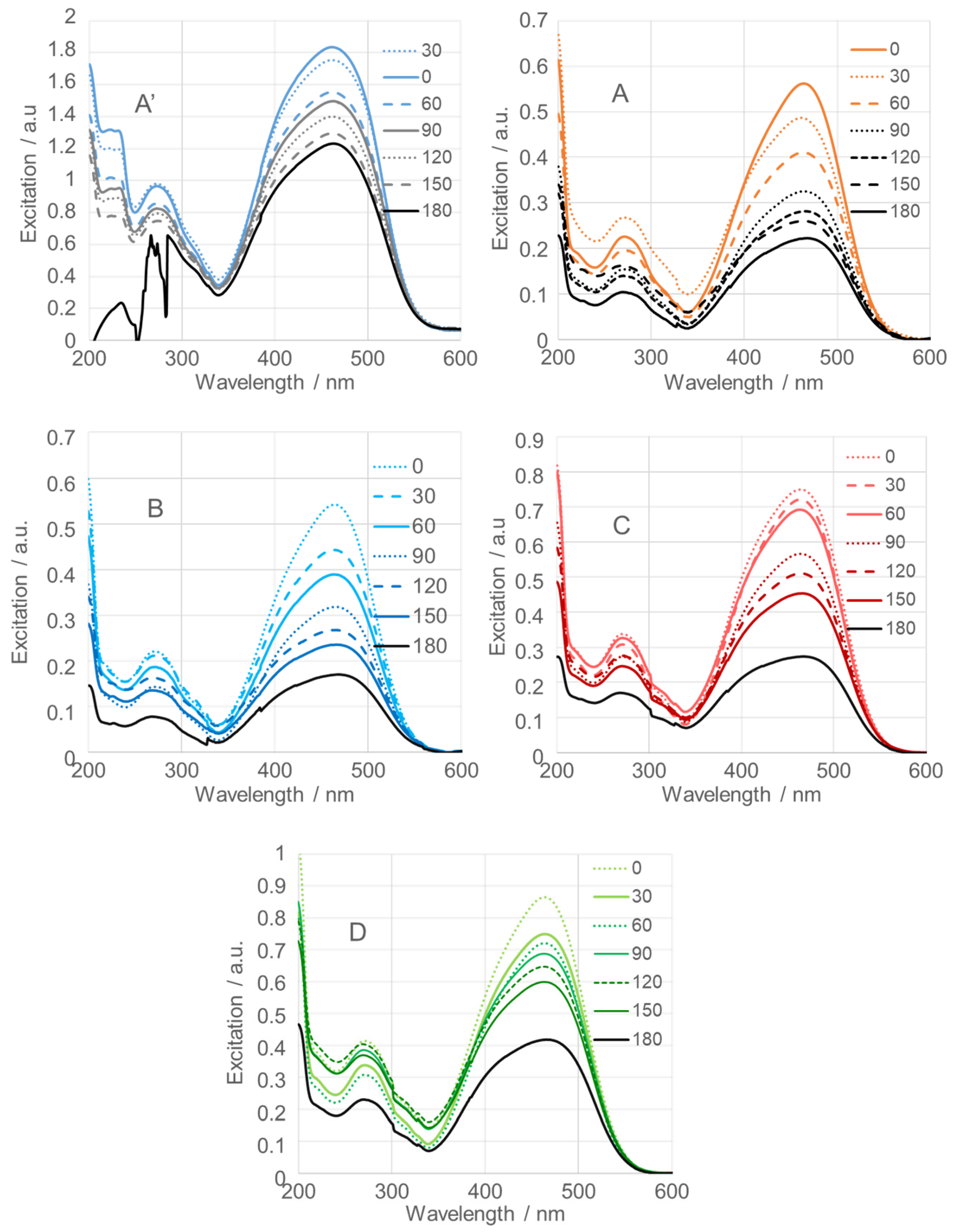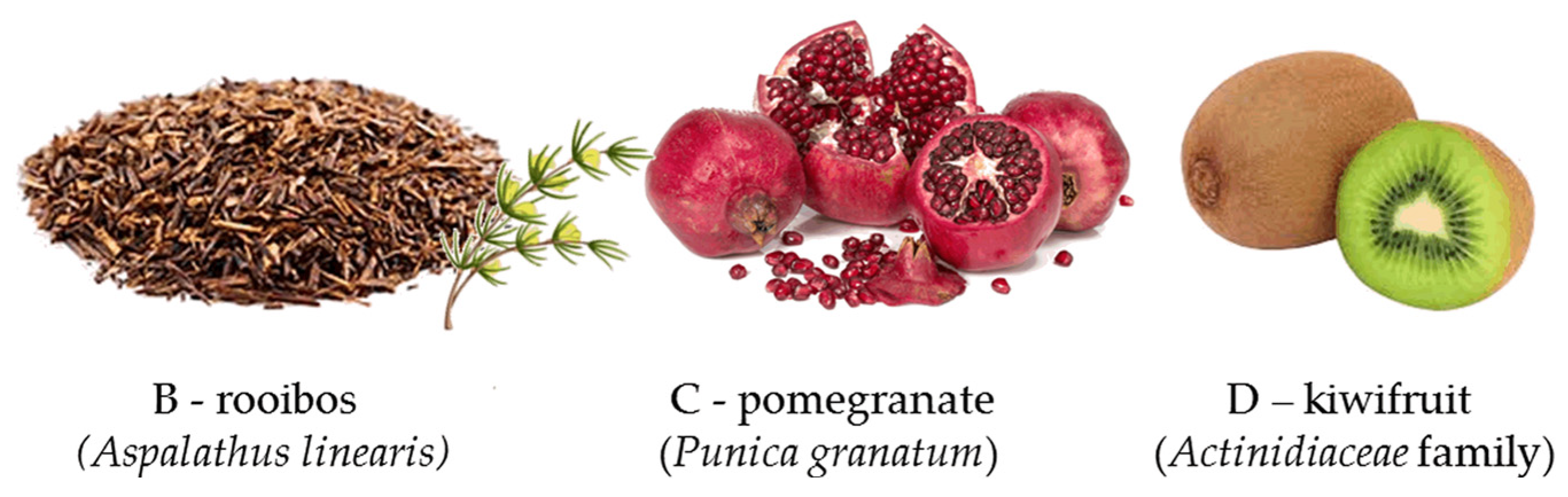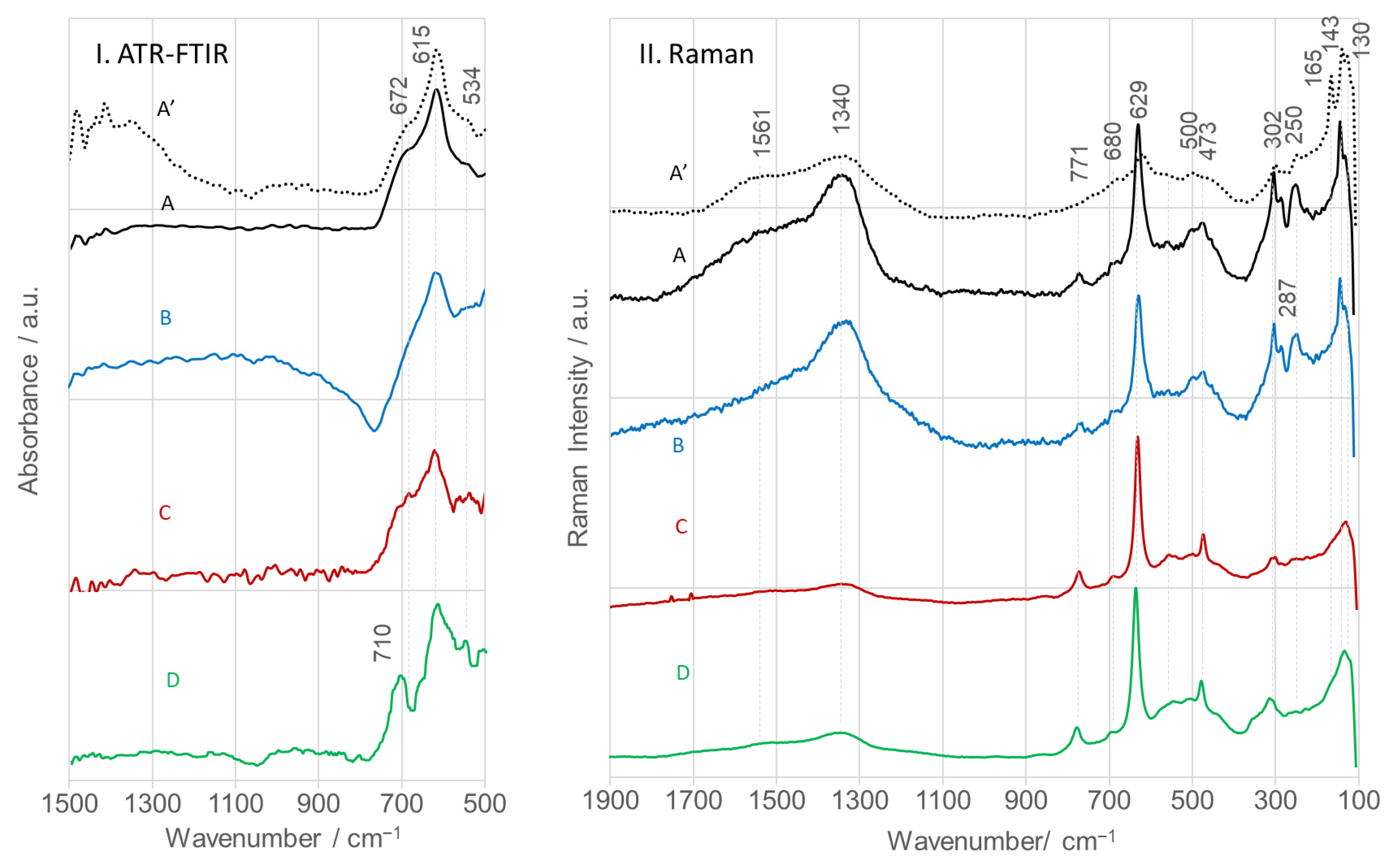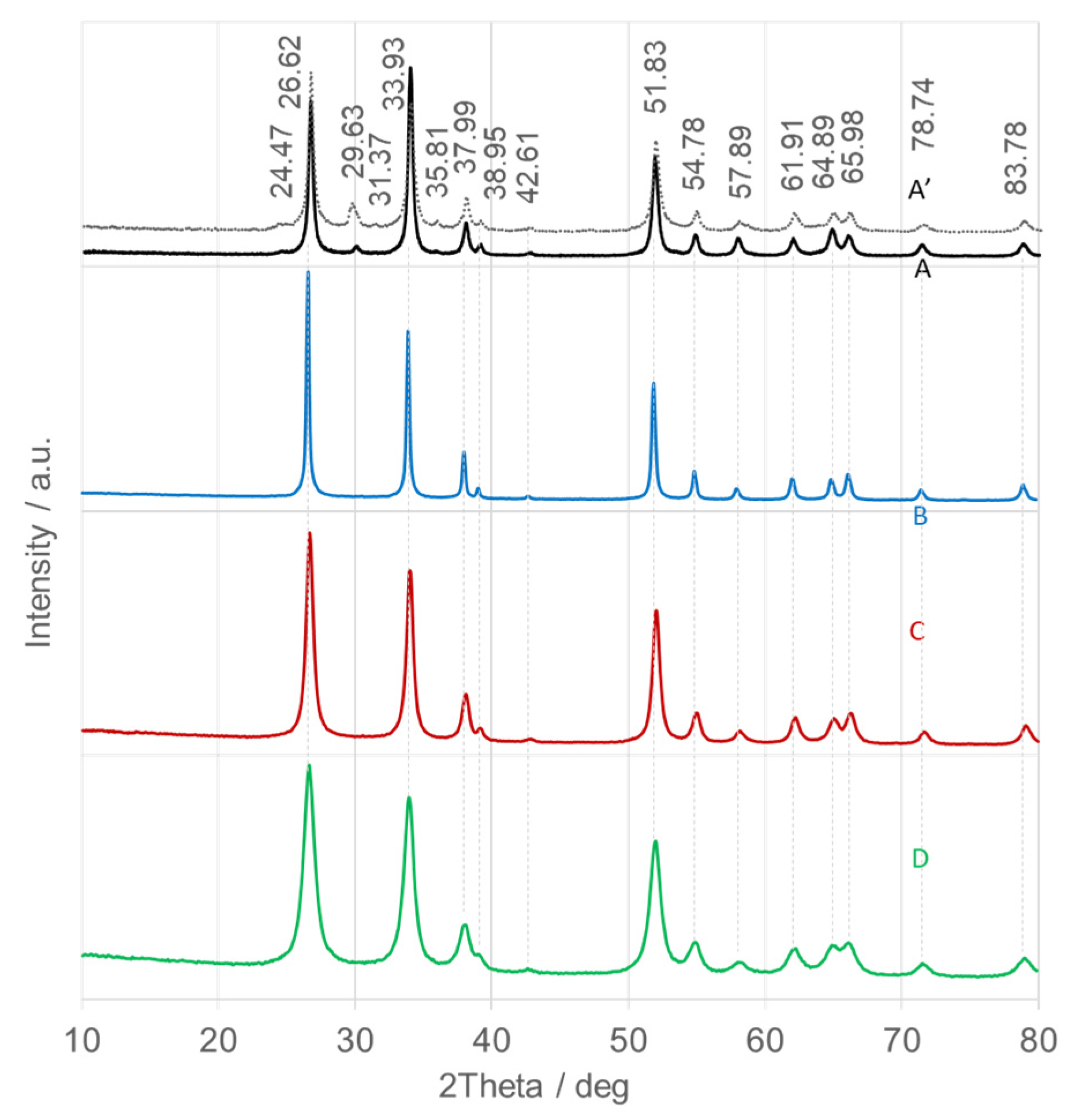 | SnO2NPs-A’ (Wet Chemistry, 400 °C) | SnO2NPs-A (Wet Chemistry, 600 °C) | SnO2NPs-B (Rooibos, 700 °C) | SnO2NPs-C (Pomegranate, 600 °C) | SnO2NPs-D (Kiwifruit, 500 °C) | |||||