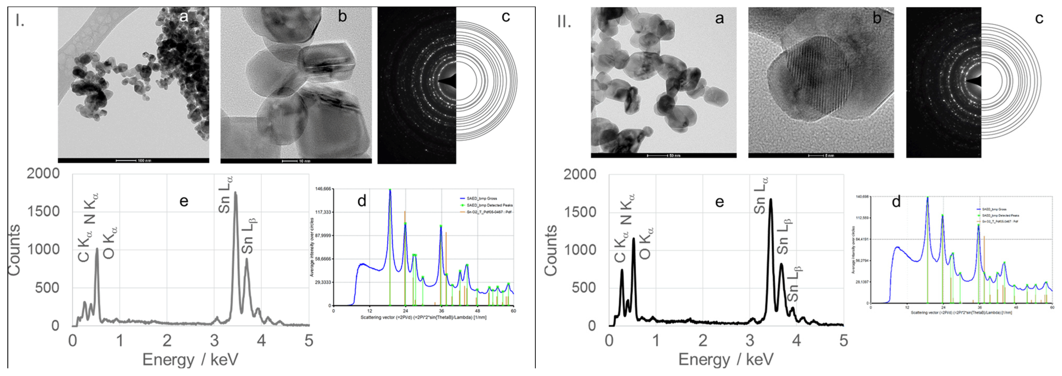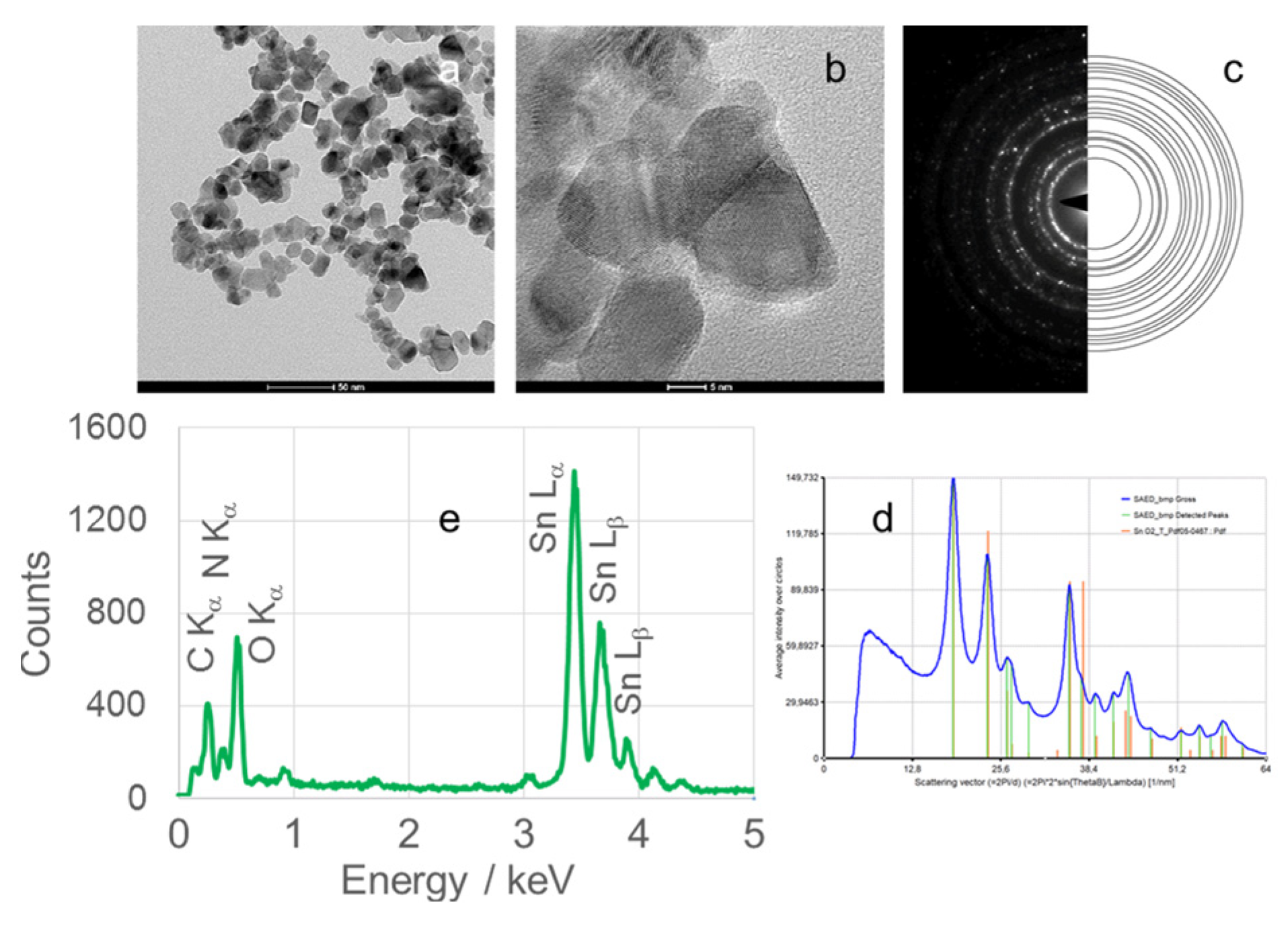| SnO2NPs-B (rooibos, 700 °C) | 110 | 26.6368 | 76.35 | 383 | 0.51 | O Kα | O: 57.33 | 325 | 3.81 | 68.6 |