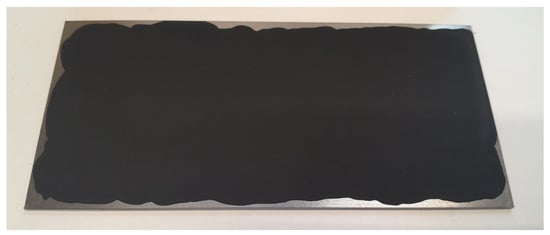 The resulting suspension was applied to the steel substrate using an applicator with a steel roller, set to a 250 μm gap. The coating application principle is illustrated in Figure 2. After application, the coatings were cured in a drying oven at 100 °C for 24 h to remove residual toluene. The visual appearance of the obtained coatings is shown in Figure 3.