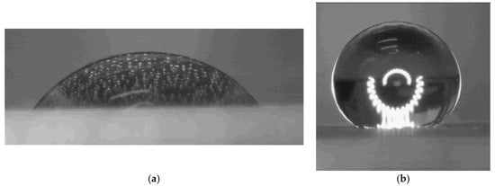 Images of water droplets on the epoxy-based coating (a) and on the graphene nanoplatelet-based coating (b).