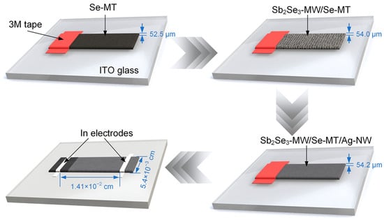 Fabrication flow of the Sb2Se3-MW/Se-MT/Ag-NW heterojunction.