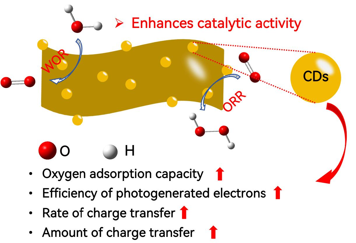 Xu, H.; Li, Z.; Wang, J.; Liao, F.; Huang, H.; Liu, Y. Carbon Dot-Modified Quercetin Enables Synergistic Enhancement of Charge Transfer and Oxygen Adsorption for Efficient H2O2 Photoproduction. Nanomaterials 2025, 15, 1856. https://doi.org/10.3390/nano15241856