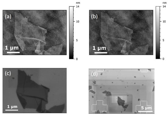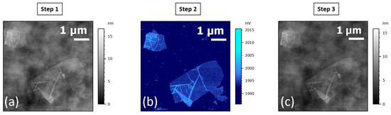 However, the data acquired that are available in the literature are rarely correlated on a single flake. Many studies show the use of more than one technique [31,32,33,34,35], but not on exactly the same flake or group of flakes. Therefore, the correlation of data from both (or more) techniques is in most cases subject to sample inhomogeneity. This is particularly disadvantageous when using local microscopy techniques, which are often time consuming.