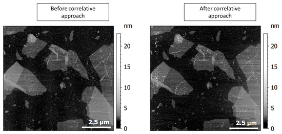 AFM tapping mode scan of the rGO flakes under investigation, before and after the whole correlative approach process.