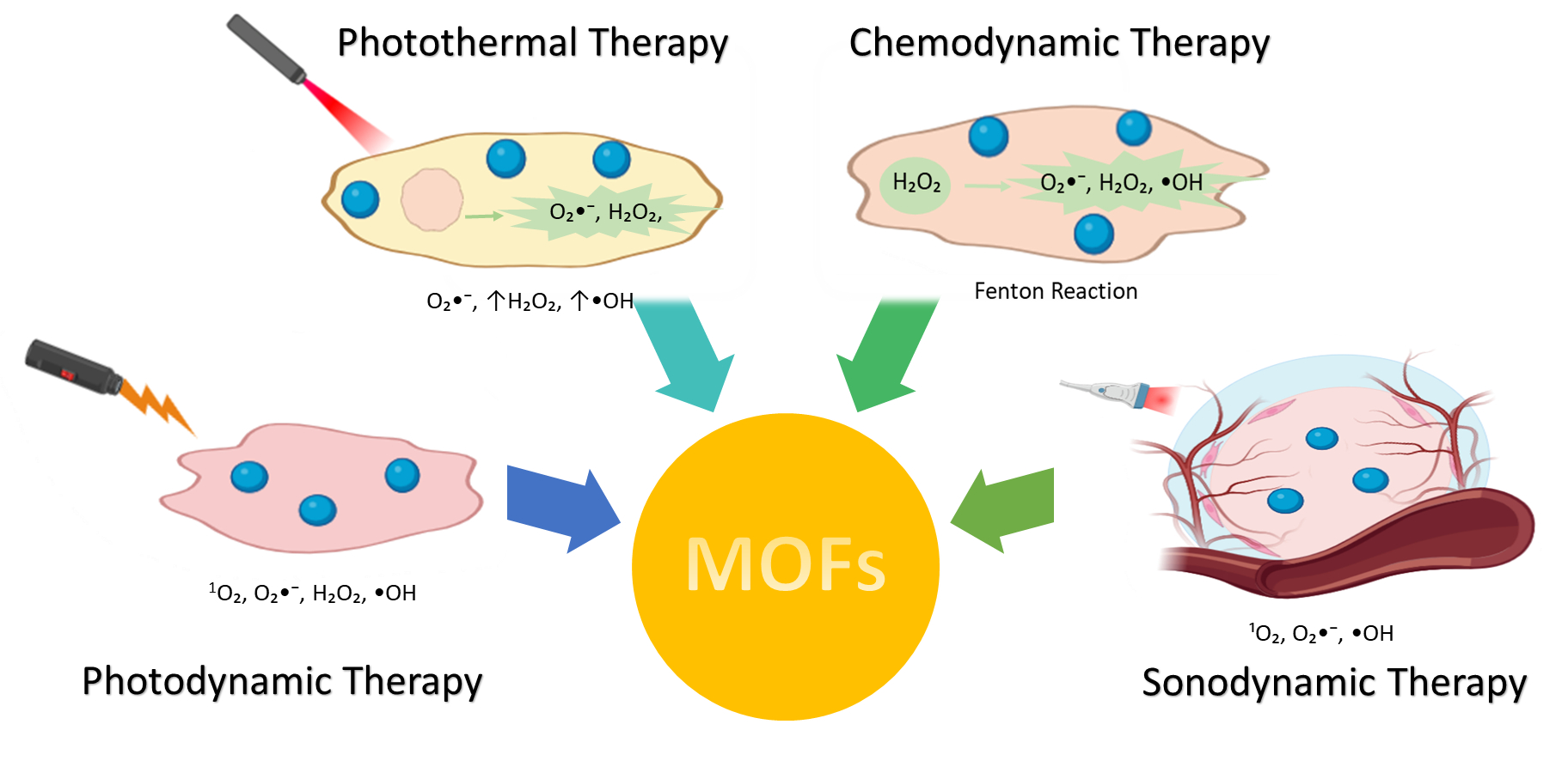 | Curcumin@DOX@MOF-199 (Cu-based) [86] | Co-loading of DOX + curcumin | Sustained dual-drug release | Synergistic ferroptosis + apoptosis; strong tumor inhibition | Dual-drug therapeutic nanoplatform |