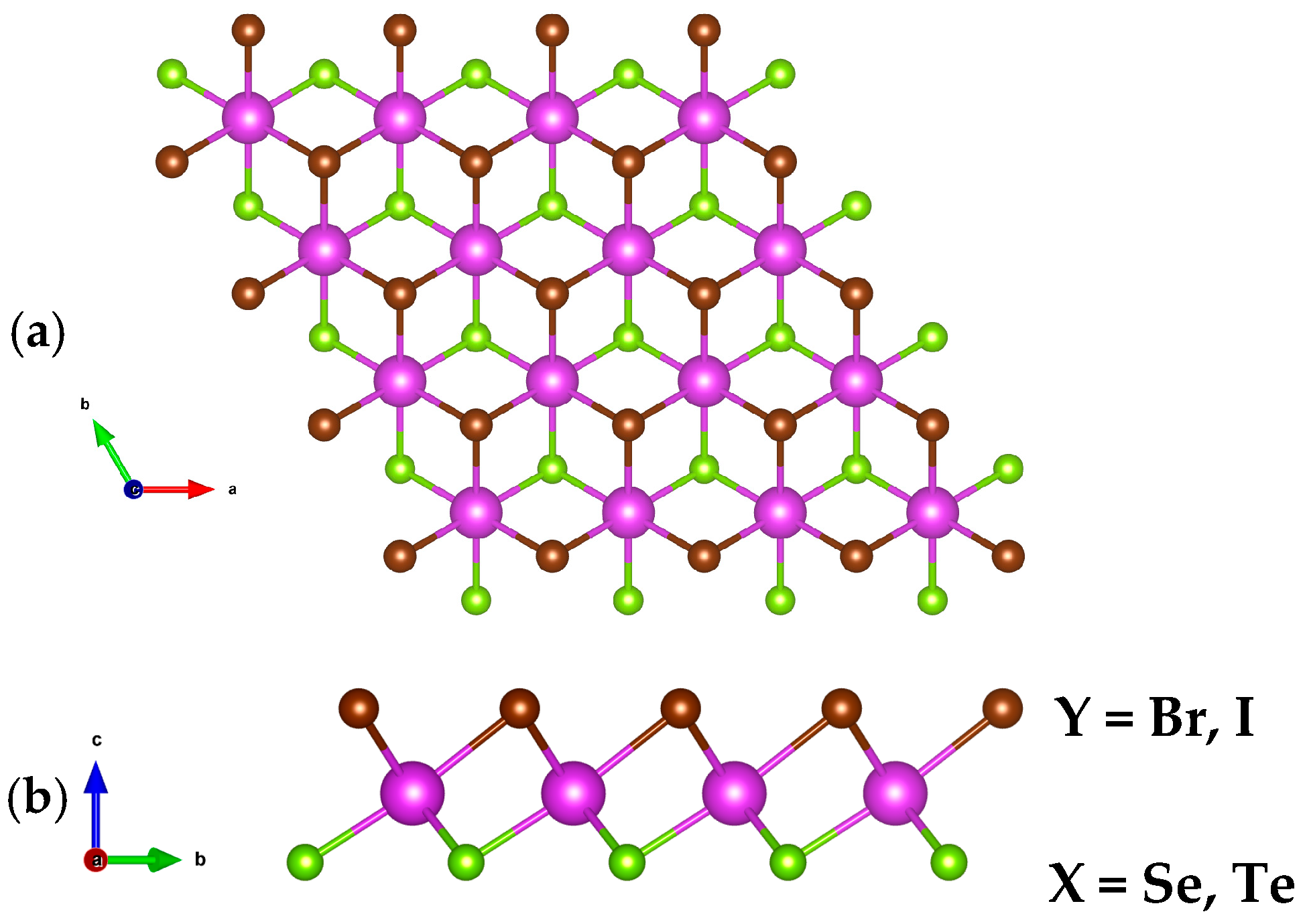 - Ma, C.; Li, W.-Y.; Xiao, X.-F.; Liu, Y.-C.; Geng, W.T.; Wang, V. A comparative first-principles study of the electronic and excitonic properties of 2H-CrX2 (X = S, Se, Te) monolayers. Phys. E Low Dimens. Syst. Nanostructures 2025, 171, 116237. [Google Scholar] [CrossRef]