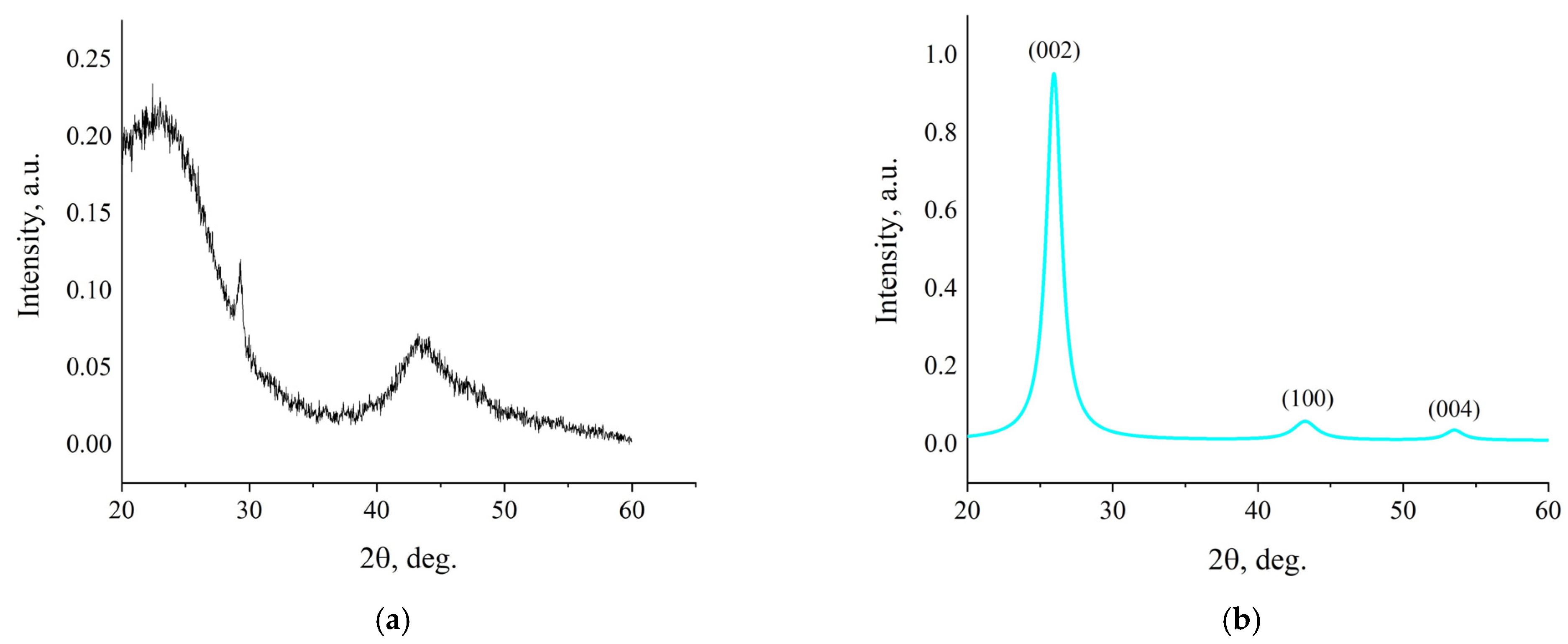 - Li, Z.Q.; Lu, C.J.; Xia, Z.P.; Zhou, Y.; Luo, Z. X-ray diffraction patterns of graphite and turbostratic carbon. Carbon 2007, 45, 1686–1695. [Google Scholar] [CrossRef]