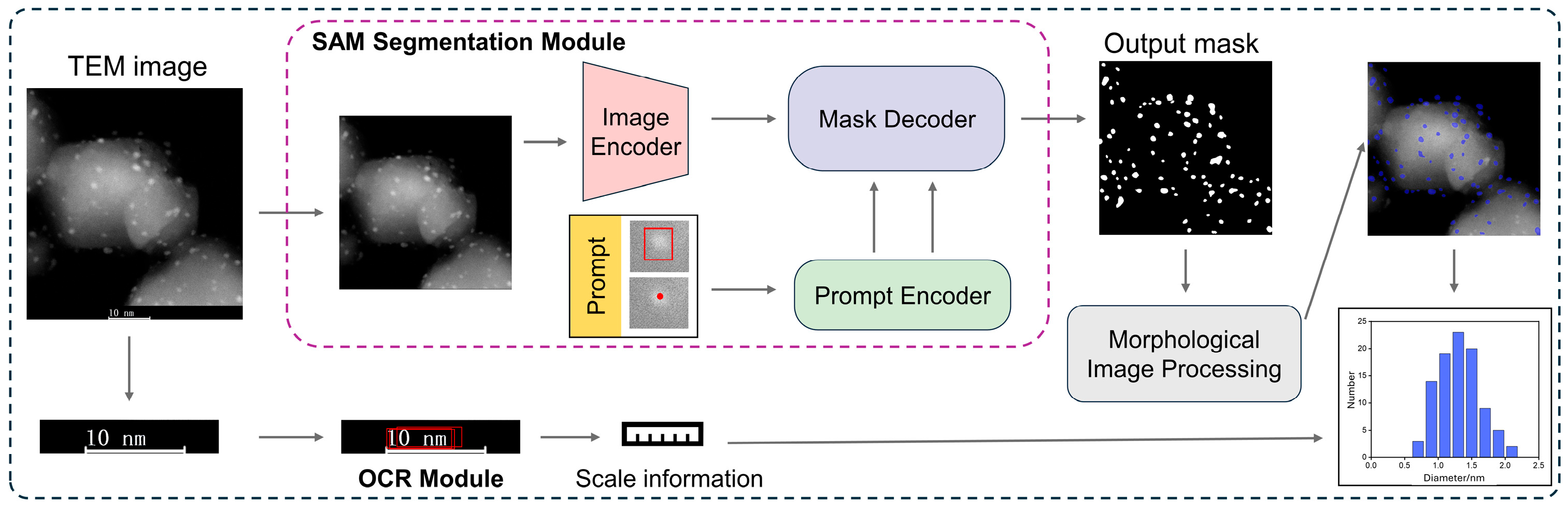Zhong, X.; Liang, G.; Meng, L.; Xi, W.; Gu, L.; Tian, N.; Zhai, Y.; He, Y.; Huang, Y.; Jin, F.; et al. Automated Particle Size Analysis of Supported Nanoparticle TEM Images Using a Pre-Trained SAM Model. Nanomaterials 2025, 15, 1886. https://doi.org/10.3390/nano15241886