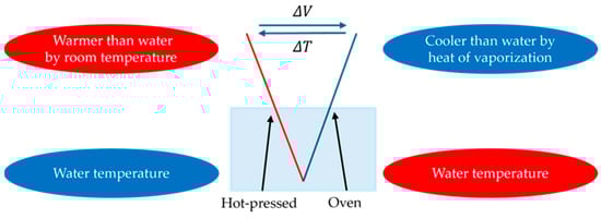 In our previous study [26], we found that the water absorption ability of CNTCP can be easily controlled by changing the drying and molding process within the fabrication method. In other words, depending on the drying and molding process, it is possible to produce samples that can generate HoV and samples that do not generate HoV. In this study, we found that different drying and forming methods can be applied simultaneously to the same sample. This makes it possible to create a part with water absorption ability and a part without water absorption ability in the same sample, and it was found that it is possible to improve t-E.M.F. from the same sample. In the following sections, we report on the newly developed fabrication method and the improvement in t-E.M.F. of CNTCP.