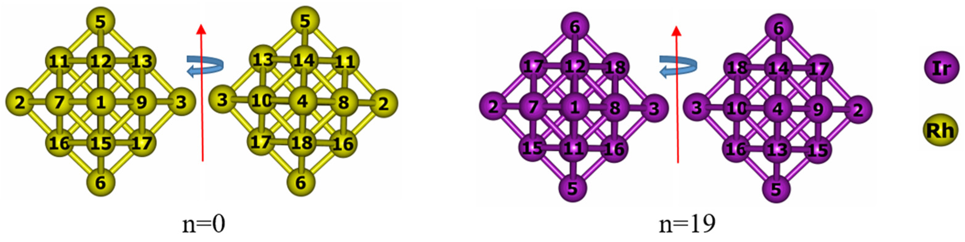 - Fan, T.E.; Demiroglu, I.; Hussein, H.A.; Liu, T.D.; Johnston, R.L. DFT Study of the Structure, Chemical Ordering and Molecular Adsorption of Pd-Ir Nanoalloys. Phys. Chem. Chem. Phys. 2017, 19, 27090–27098. [Google Scholar] [CrossRef]