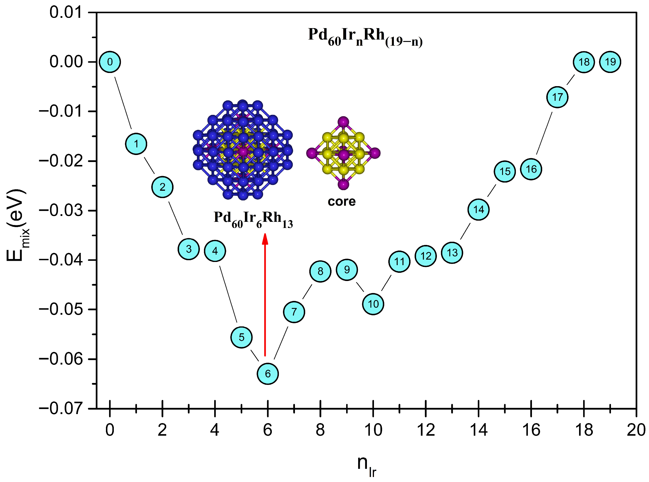 - Davis, J.B.A.; Johnston, R.L.; Rubinovich, L.; Polak, M. Comparative Modelling of Chemical Ordering in Palladium-Iridium Nanoalloys. J. Chem. Phys. 2014, 141, 224307. [Google Scholar] [CrossRef] [PubMed]