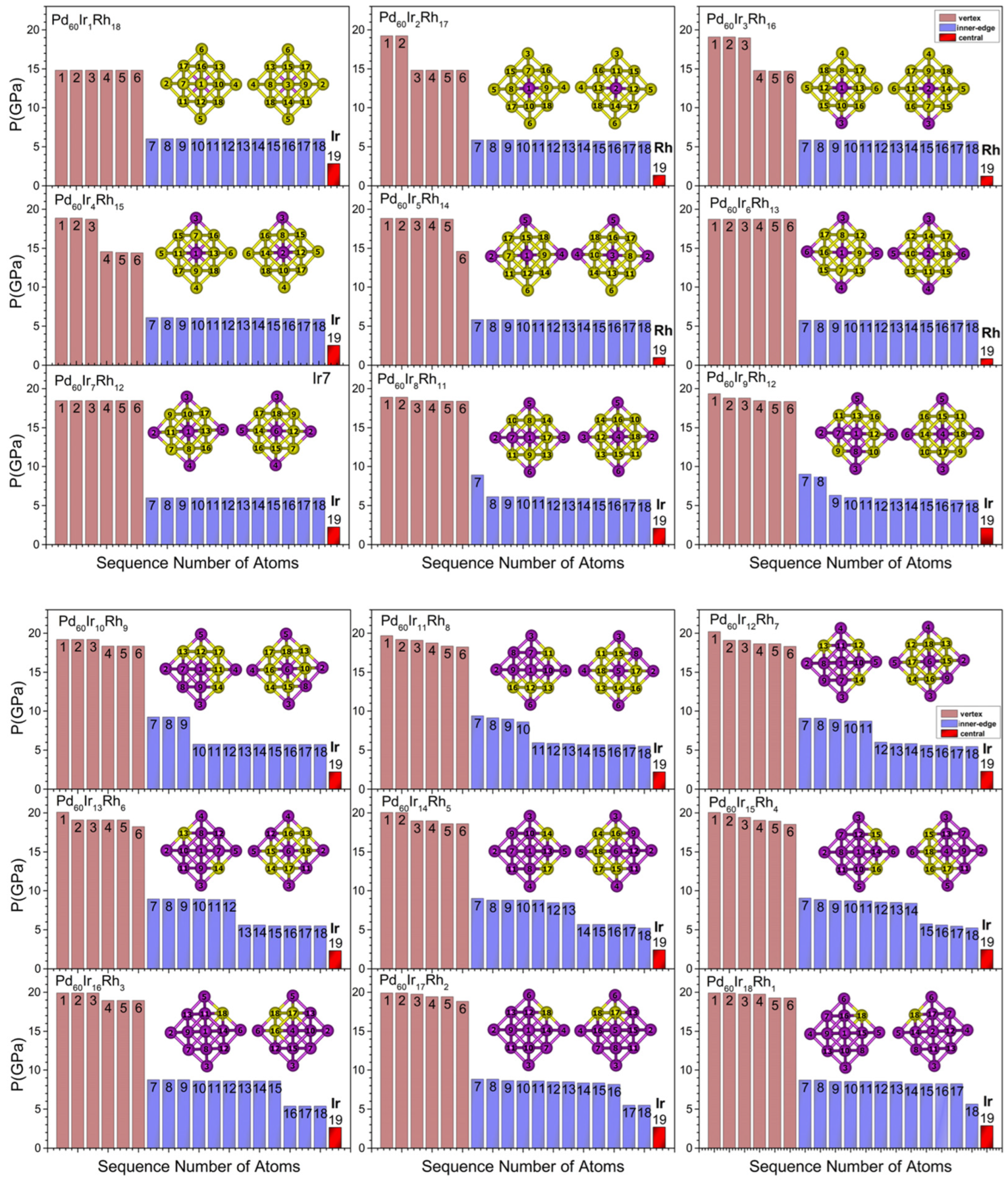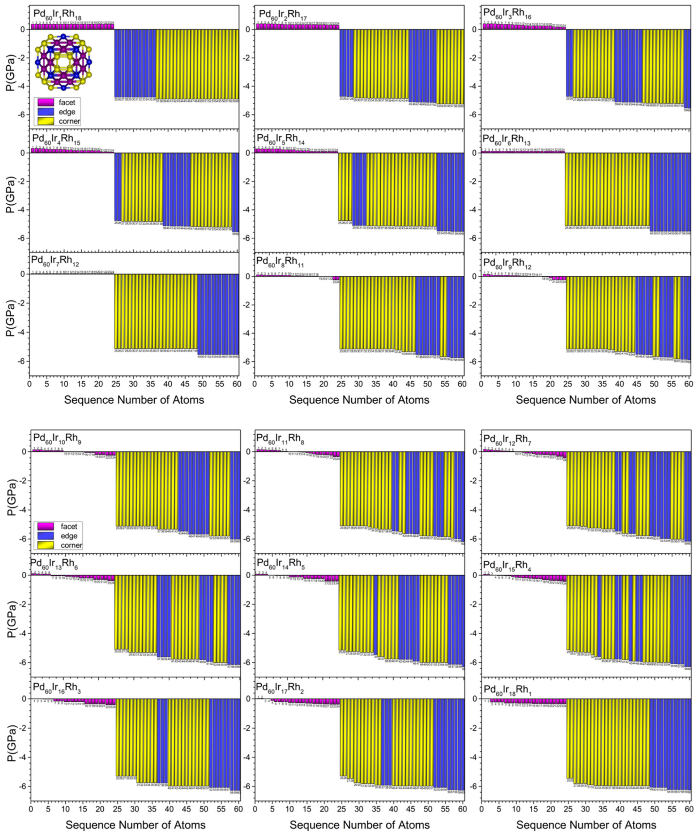- Garip, A.K.; Göcen, T. The Local Atomic Pressures in 79 Atom Pd-Ag-Pt Truncated Octahedron Structure. Eur. Phys. J. Appl. Phys. 2022, 97, 30. [Google Scholar] [CrossRef]