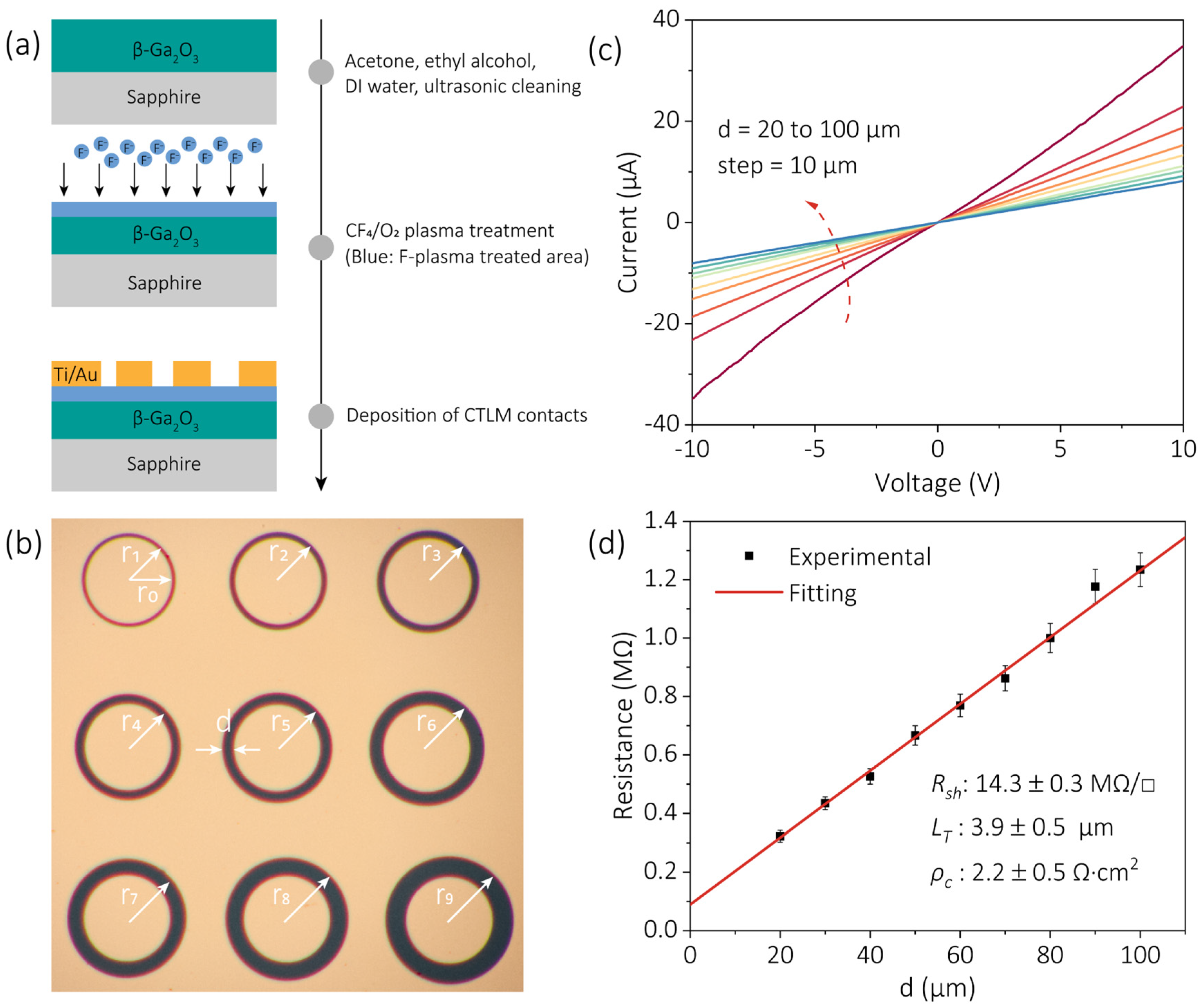 - Zhu, J.; Feng, J.; Huang, S.; Yang, N.; Qiu, B.; Duan, E.; Liu, S.; Zhang, B.; Zhang, Z.; Zhou, Q. Impact of fluorine plasma and electrothermal annealing on the interfacial properties at Ni/β-Ga2O3 Schottky contacts. J. Semicond. 2026, 47, 022102-1. [Google Scholar] [CrossRef]