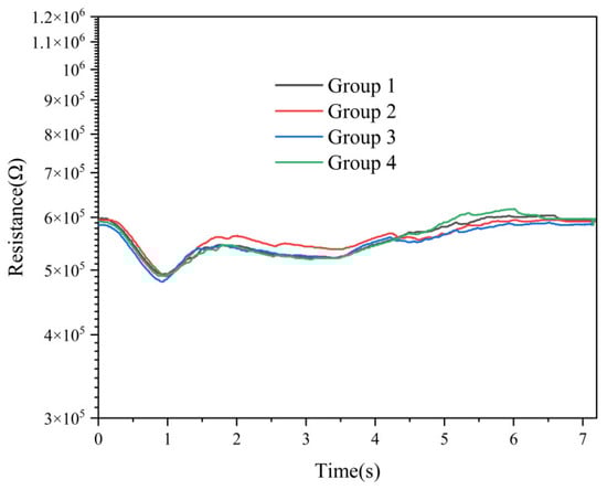 The resistance responses of four groups of gases are shown in Figure 13. It is observed that for 12 interfering gases, the sensor still had obvious characteristic peaks for HCN, indicating that the sensor had good anti-interference ability for HCN.