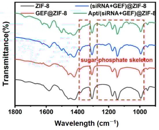 - Liu, M.; Sun, C.; Jiang, J.; Wan, L.; Hu, C.; Wen, C.; Huang, G.; Ruan, Q.; Wu, S.; Qiao, D.; et al. Aptamer-Functionalized ZIF-8 Nanomedicine for Targeted Delivery of Gefitinib and siRNA to Treat Tyrosine-Kinase-Inhibitor-Resistant Nonsmall-Cell Lung Cancer. ACS Appl. Nano Mater. 2023, 6, 21587–21602. [Google Scholar] [CrossRef]