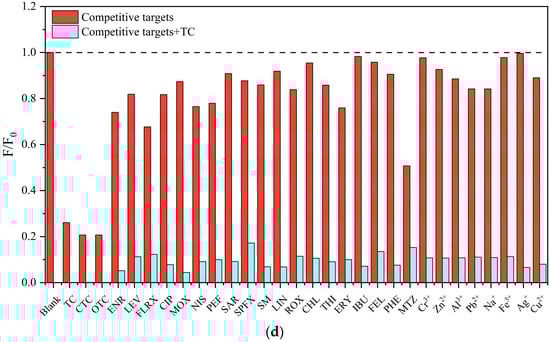 Antibiotic pollution is a global concern and significantly impacts human health, attracting a great deal of attention due to its potential health risks [1]. TCs, a class of broad-spectrum antibiotics including TC, CTC, OTC, etc., have been widely used in veterinary practice, animal husbandry, human treatment, and agricultural purposes for treating and controlling infectious bacterial diseases [2,3]. However, the overuse of TCs may lead to side effects, including allergic reactions, kidney failure, and the development of antibiotic resistance in humans [4,5]. In addition, the improper disposal of antibiotics can result in relatively high levels of antibiotics in the water environment [6]. Therefore, the accurate and specific detection of TCs will help eliminate their negative impacts.