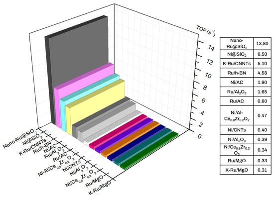 | [127] | Ru/MgO | 60,000 | 4.70 | 400 | 0.07 |