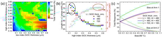 - Nejadriahi, H.; Pappert, S.; Fainman, Y.; Yu, P. Efficient and Compact Thermo-Optic Phase Shifter in Silicon-Rich Silicon Nitride. Opt. Lett. 2021, 46, 4646–4649. [Google Scholar] [CrossRef] [PubMed]