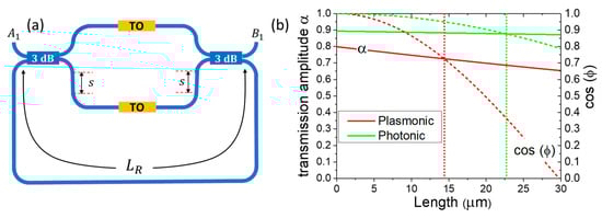 - Gosciniak, J.; Markey, L.; Dereux, A.; Bozhevolnyi, S.I. Thermo-Optic Control of Dielectric-Loaded Plasmonic Mach–Zehnder Interferometers and Directional Coupler Switches. Nanotechnology 2012, 23, 444008. [Google Scholar] [CrossRef] [PubMed][Green Version]