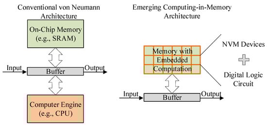 - Sun, Z.; Kvatinsky, S.; Si, X.; Mehonic, A.; Cai, Y.; Huang, R. A full spectrum of computing-in-memory technologies. Nat. Electron. 2023, 6, 823–835. [Google Scholar] [CrossRef]