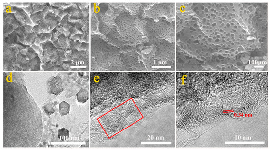 A field-emission scanning electron microscope (SEM, Osaka, Japan) was used to observe the micromorphology of the samples. The high-resolution image was observed using transmission electron microscopy (TEM, Osaka, Japan). N2 absorption–desorption isotherm was analyzed by automatic SSA, pore analysis, and vapor adsorption instrument (BELSORP max, Osaka, Japan), and the specific surface area and pore diameter were determined based on Brunauer Emmett Teller (BET) and density functional theory (DFT) models, respectively. The crystallinity of the carbon materials was analyzed using X-ray diffraction (XRD, Almelo, The Netherlands). The laser source of Raman spectrometer was 514 nm. The details of X-ray photoelectron spectroscopy (XPS, United Kingdom, UK) and of the equipment above were described in our previous study [15].