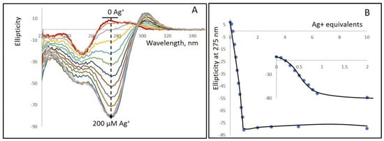 - Katrivas, L.; Makarovsky, A.; Kempinski, B.; Randazzo, A.; Improta, R.; Rotem, D.; Porath, D.; Kotlyar, A.B. Ag+-Mediated Folding of Long Polyguanine Strands to Double and Quadruple Helixes. Nanomaterials 2024, 14, 663. [Google Scholar] [CrossRef]