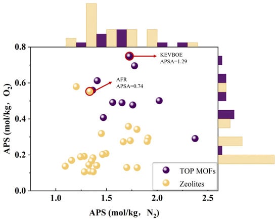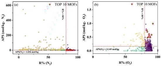 | MOF Name | APS (mol/kg, N2) | R% (N2) | APS (mol/kg, O2) | R% (O2) | APSA |