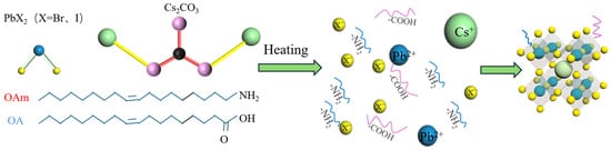 10]. Compared with single halogen perovskite quantum dots, the mixed halogen perovskite quantum dots can achieve continuous adjustment of the band gap within a certain range by adjusting the halogen ratio to meet the needs of different optoelectronic applications, provide flexible adaptability for the design of optoelectronic devices, and become an ideal candidate material for optoelectronic devices [