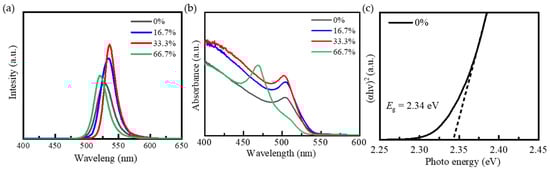 Figure 5b is the absorption spectra of quantum dots with different Mn doping concentrations. All samples show similar absorption characteristics in the visible light range, and the absorption edge is located at ~530 nm, which corresponds to the band gap absorption of CsPbBr