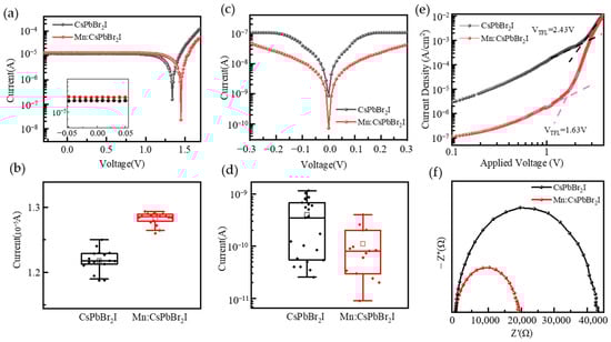 2+ doping effectively reduces the defect density of quantum dots by alleviating lattice distortion and improving crystal integrity. This structural optimization promotes efficient carrier migration while suppressing non-radiative recombination processes. The above mechanism can explain the reduction in dark current and the increase in photocurrent in Mn