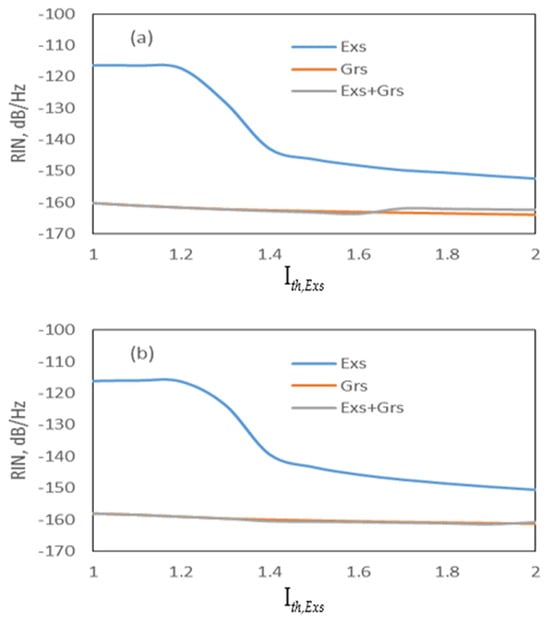 RIN spectrum as a function of Ith,Exs (a) DRM and (b) CRM.