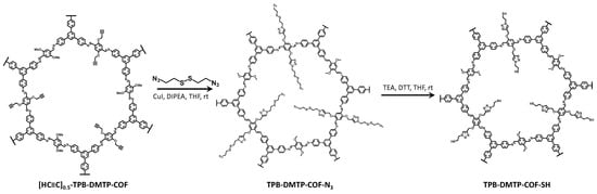 2.2. Synthesis of TPB-DMTP-COF-SH