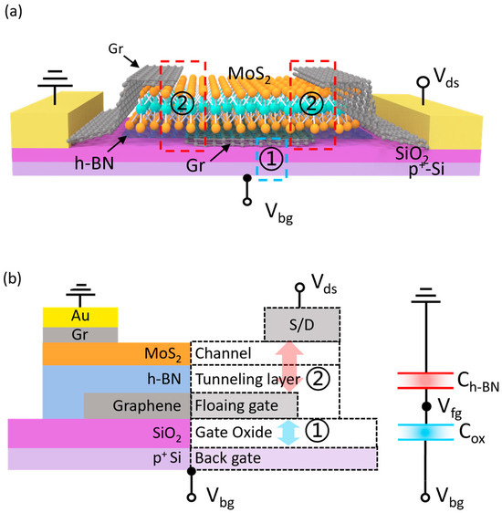 - Sasaki, T.; Ueno, K.; Taniguchi, T.; Watanabe, K.; Nishimura, T.; Nagashio, K. Material and device structure designs for 2D memory devices based on the floating gate voltage trajectory. ACS Nano 2021, 15, 6658–6668. [Google Scholar] [CrossRef]