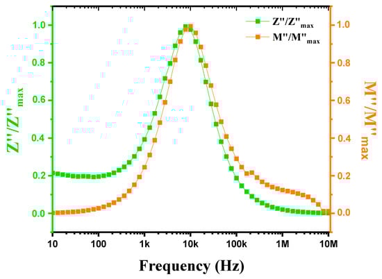 Variation in Z″/Z″max and M″/M″max with frequency for modified marl at 900 °C.