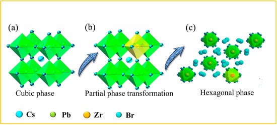 - Varnakavi, N.; Gupta, K.; Lee, K.; Yang, J.; Cha, P.-R.; Lee, N. Compositional Engineering of ZnBr2-Doped CsPbBr3 Perovskite Nanocrystals: Insights into Structure Transformation, Optical Performance, and Charge-Carrier Dynamics. J. Mater. Chem. C 2023, 11, 14248–14259. [Google Scholar] [CrossRef]