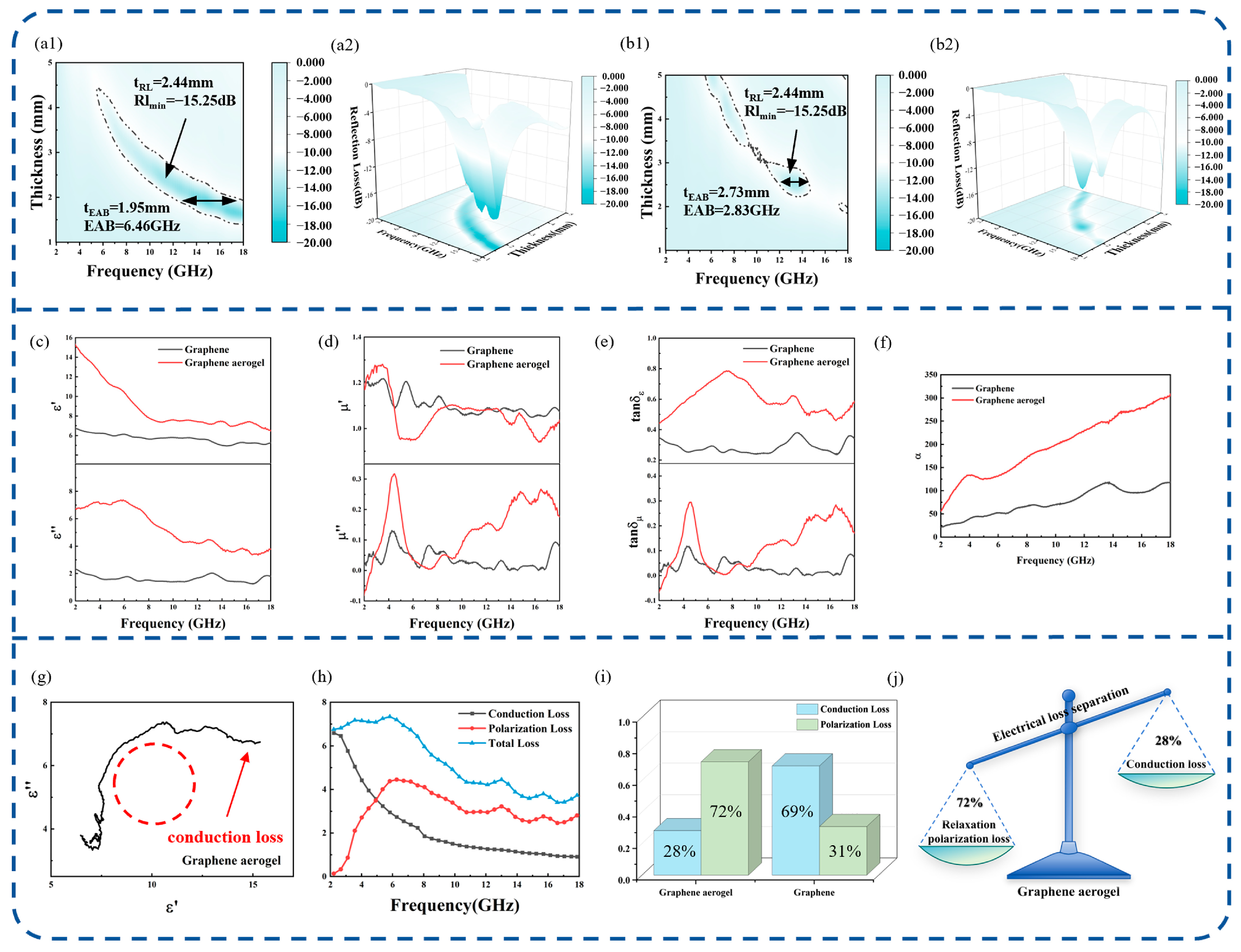 3.1. Analysis of the EMW Absorption Performance of Graphene Aerogel and Graphene