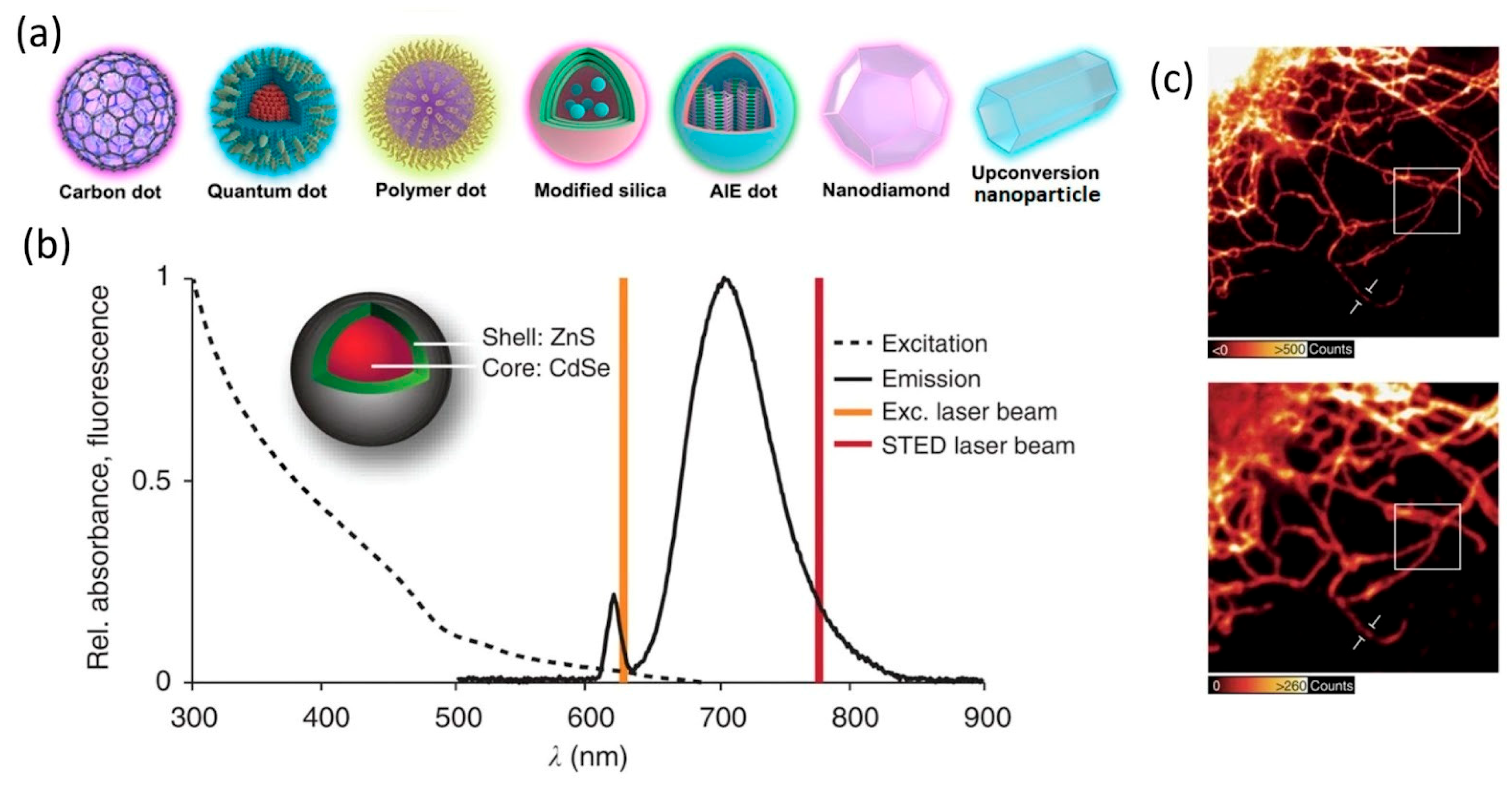 - Li, W.; Kaminski Schierle, G.S.; Lei, B.; Liu, Y.; Kaminski, C.F. Fluorescent Nanoparticles for Super-Resolution Imaging. Chem. Rev. 2022, 122, 12495–12543. [Google Scholar] [CrossRef]